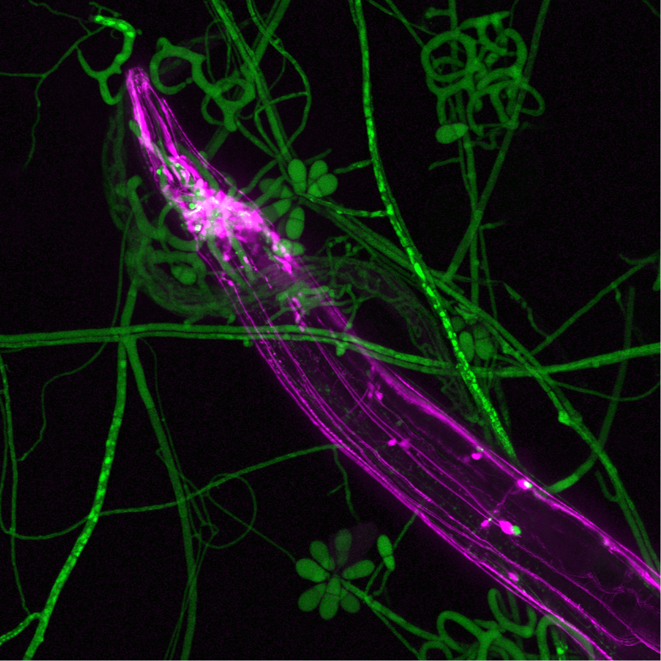 Anpassungen und Gegenanpassungen im gesamten Baum des Lebens. Eines der faszinierendsten, aber am wenigsten sichtbaren Beispiele findet im Boden statt, wo fleischfressende Pilze mikroskopisch kleine Würmer, bekannt als Nematoden, jagen.