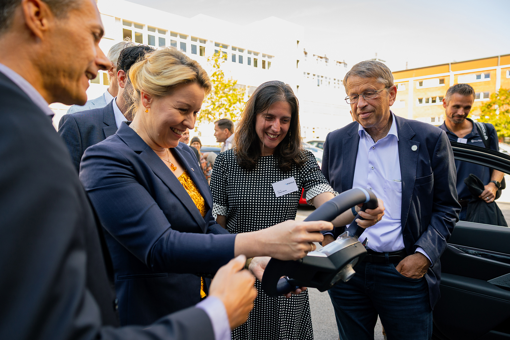 Die Berliner Wirtschaftssenatorin Franziska Giffey informiert sich über den KI-Forschungs- und Innovationsstandort am Salzufer in Charlottenburg