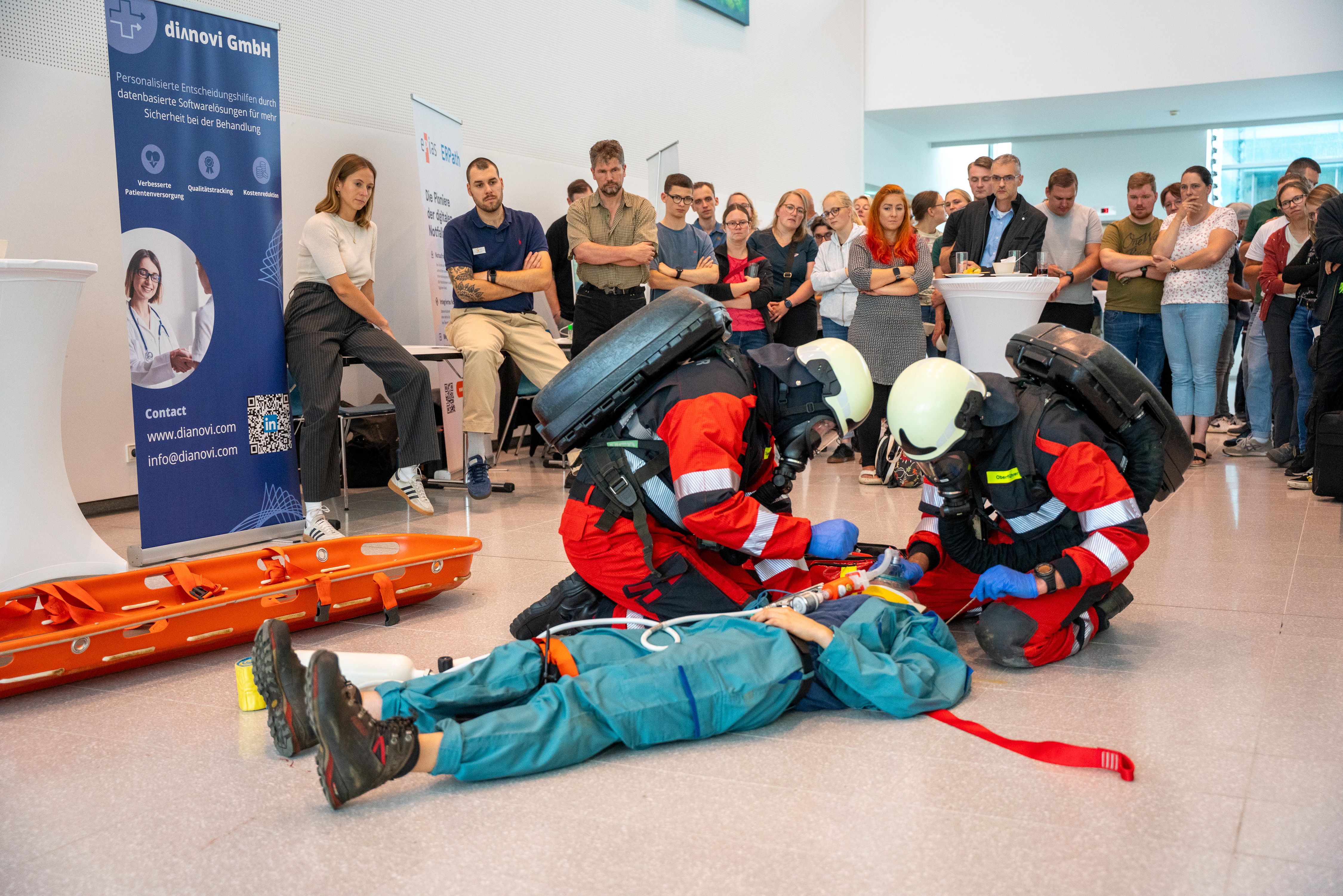 Neben diesen Schwerpunkten wurden auch wichtige Neuerungen in der konservativen Notfallmedizin vorgestellt. Dabei kamen insbesondere die gesundheitlichen und psychischen Folgen von Gewalt für Betroffene sowie deren Auswirkungen auf die Patientenversorgung zur Sprache. Im Mittelpunkt standen hier Präventionsmaßnahmen wie praxisnahe Deeskalationstrainings und ein intensiverer Austausch mit der Polizei. Ein besonderer Höhepunkt der Tagung war die eindrucksvolle Demonstration der Kolleginnen und Kollegen des Forschungs- und Lehrbergwerks der TU Bergakademie Freiberg. Unter der Leitung von Professor Andreas Fichtner wurde anhand des Tactical Medical Mining Rescue-Konzepts die Polytraumaversorgung durch nichtärztliches Personal unter extremen Bedingungen realitätsnah vorgeführt.