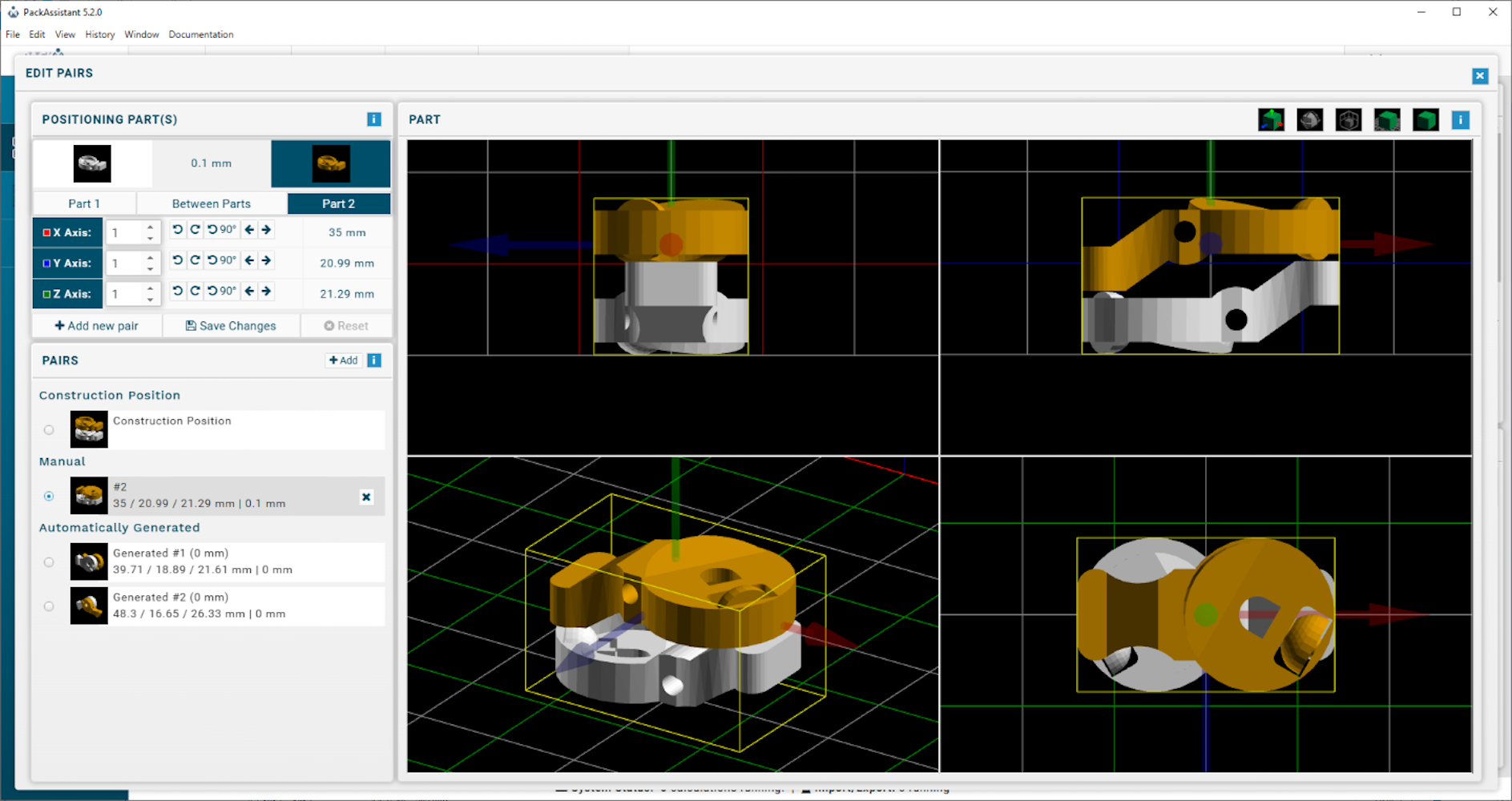 Sankt Augustin – At the FACHPACK trade fair in Nuremberg from September 23 to 25, Fraunhofer SCAI will present the latest version of its packaging software PackAssistant. The new pairing feature gives users an additional way to influence the calculated packing arrangement. This is particularly useful when exact positioning or a specific grouping of two parts is required. Users can either specify how the two parts should be placed relative to each other or adopt automatically generated pairing suggestions and adjust them to their needs. Careful placement of pairs helps reduce the risk of damage to sensitive component surfaces during transport. It is also possible to define a minimum distance between the two paired parts.