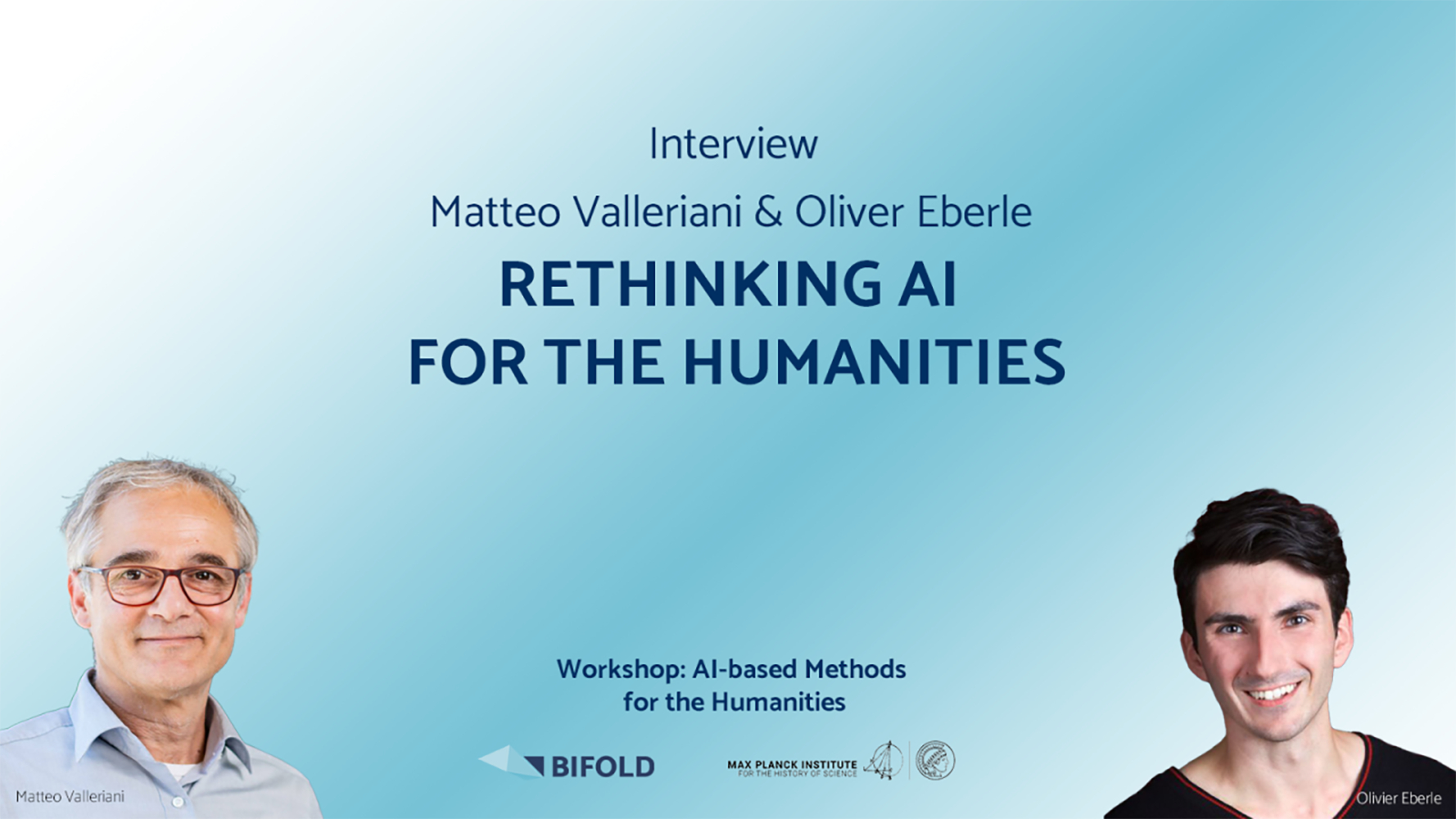 From September 23 to 24, 2025, the workshop "AI-based Methods for the Humanities" (https://www.bifold.berlin/news-events/events/ai-based-methods-for-the-humanities) will bring together leading researchers from artificial intelligence and the humanities in Berlin. Organized by Prof. Dr. Matteo Valleriani (Max Planck Institute for the History of Science, BIFOLD Fellow) and Dr. Oliver Eberle (Berlin Institute for the Foundations of Learning and Data), the event explores how AI-based methods can advance research into history, culture, and language , while simultaneously posing new challenges for AI research.