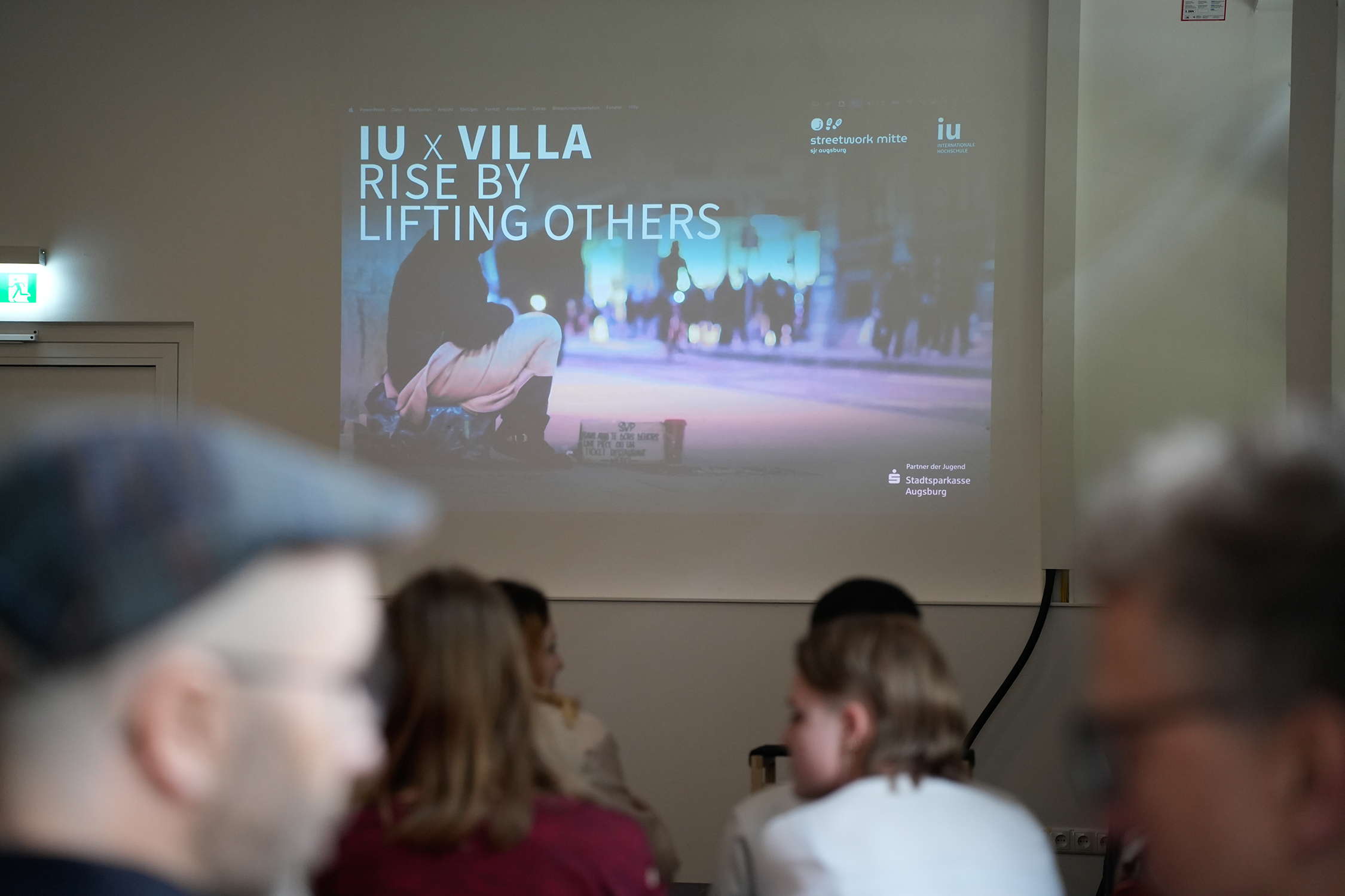 Studierende des Bachelor-Studiengangs Mediendesign der IU Internationalen Hochschule präsentierten im Rahmen der Veranstaltung „Rise by Lifting Others“ crossmediale Kampagnen zum Thema Jugendobdachlosigkeit in Augsburg. In der villa der Stadtmitte des Stadtjugendrings stellten die Studierenden ihre Projekte erfolgreich einem Fachpublikum aus Vertreter:innen sozialer Einrichtungen und Politiker:innen der Stadt Augsburg vor. Zwei Projekte haben gute Chancen, realisiert zu werden.