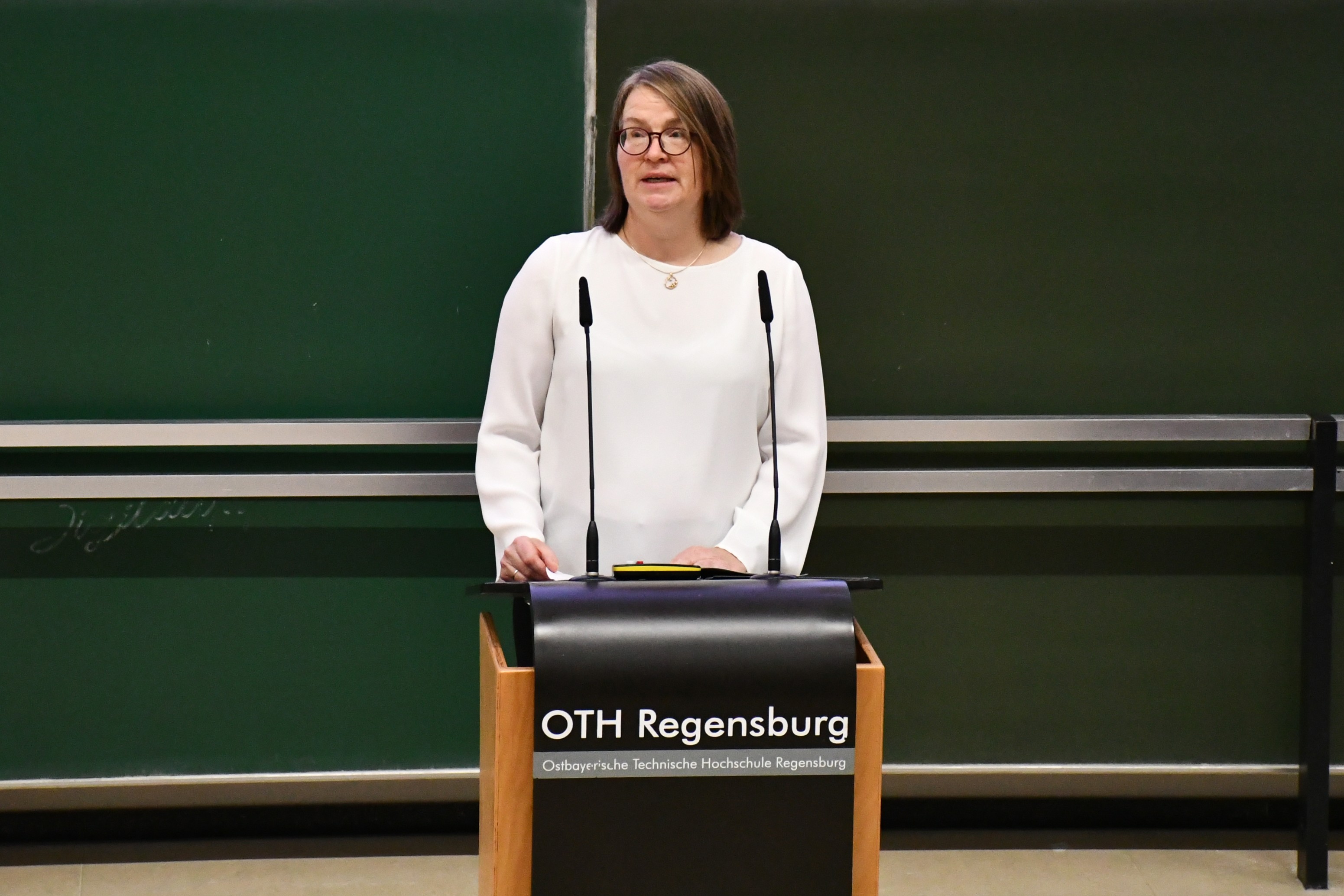 Ein Studium an der OTH Regensburg bedeutet auch, in einer lebendigen Stadt mit vielfältigen Möglichkeiten zu leben. Dies unterstrich im Anschluss Oberbürgermeisterin Gertrud Maltz-Schwarzfischer, die die Erstsemester in der Domstadt willkommen hieß. Sie hob hervor, wie sehr die Studierenden das Stadtbild prägen und wie vielfältig das kulturelle Leben Regensburgs gerade für junge Menschen ist.