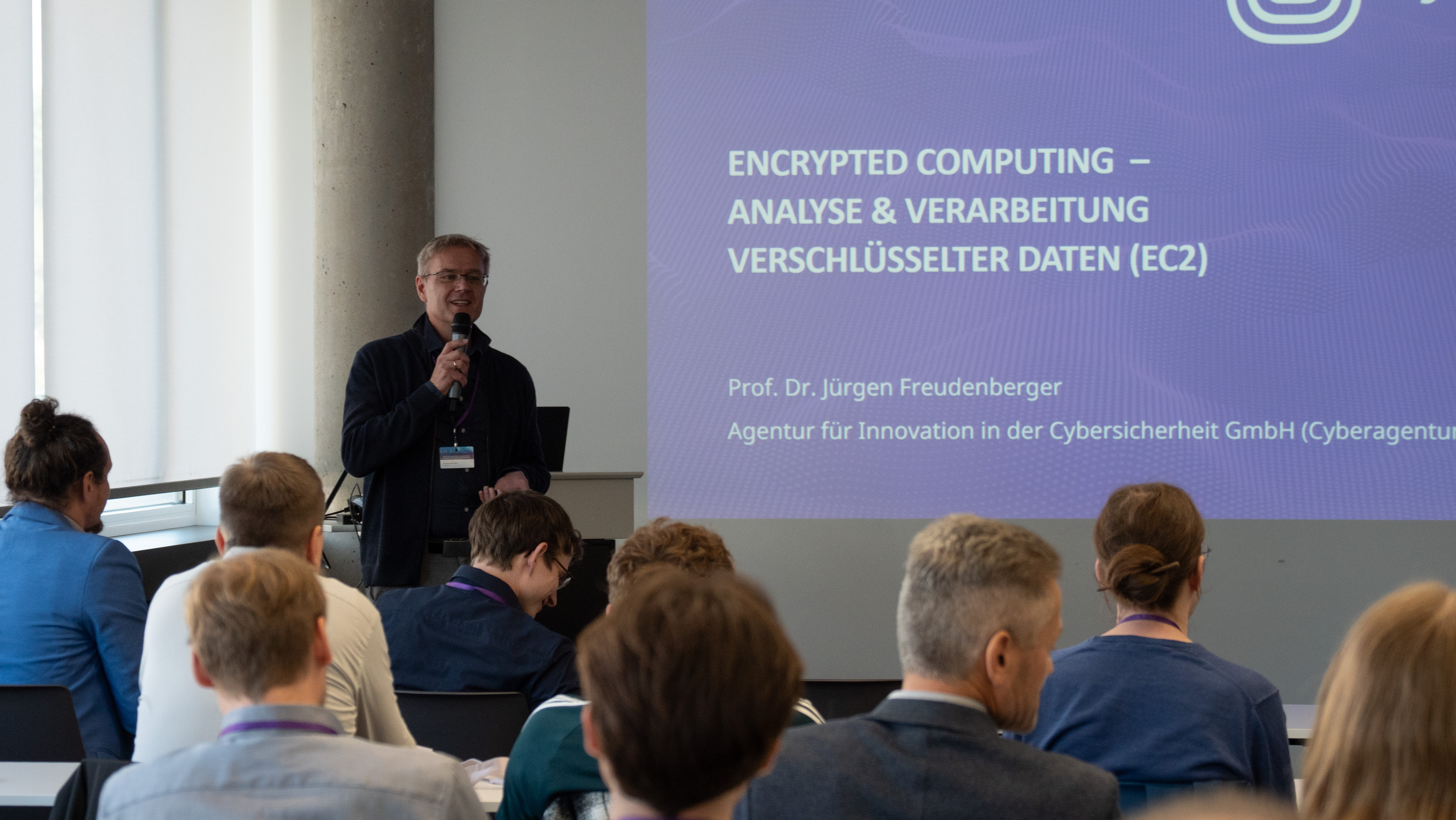 On 30 September 2025, Agentur für Innovation in der Cybersicherheit presented the "Encrypted Computing" (EC2) research programme at a specialist event in Halle (Saale). Around 40 participants from project partners, academia, end users and students from Martin Luther University Halle-Wittenberg took the opportunity to gain insights into current research approaches and fields of application.
