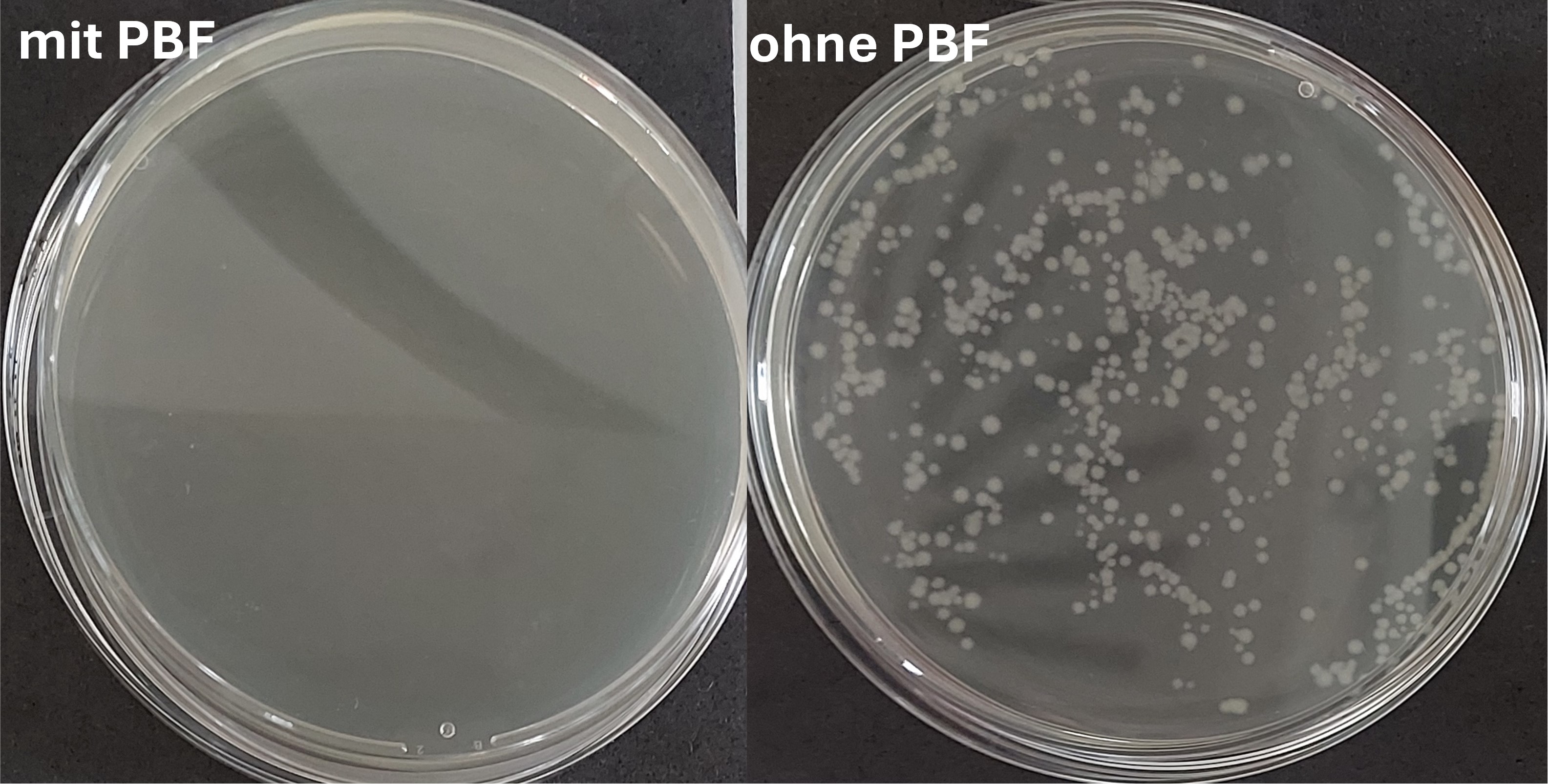 Im Vergleich zweier Plasma-Verfahren zeigte die Bogenentladung eine bis zu 4-fach höhere antimikrobielle Wirksamkeit gegenüber der dielektrischen Barriere-Entladung. Die Tests mit dem Modellorganismus E. coli zeigten eine Reduktion von bis zu 4 log-Stufen, abhängig von Material, Einwirkzeit und verwendetem PBF-Volumen.