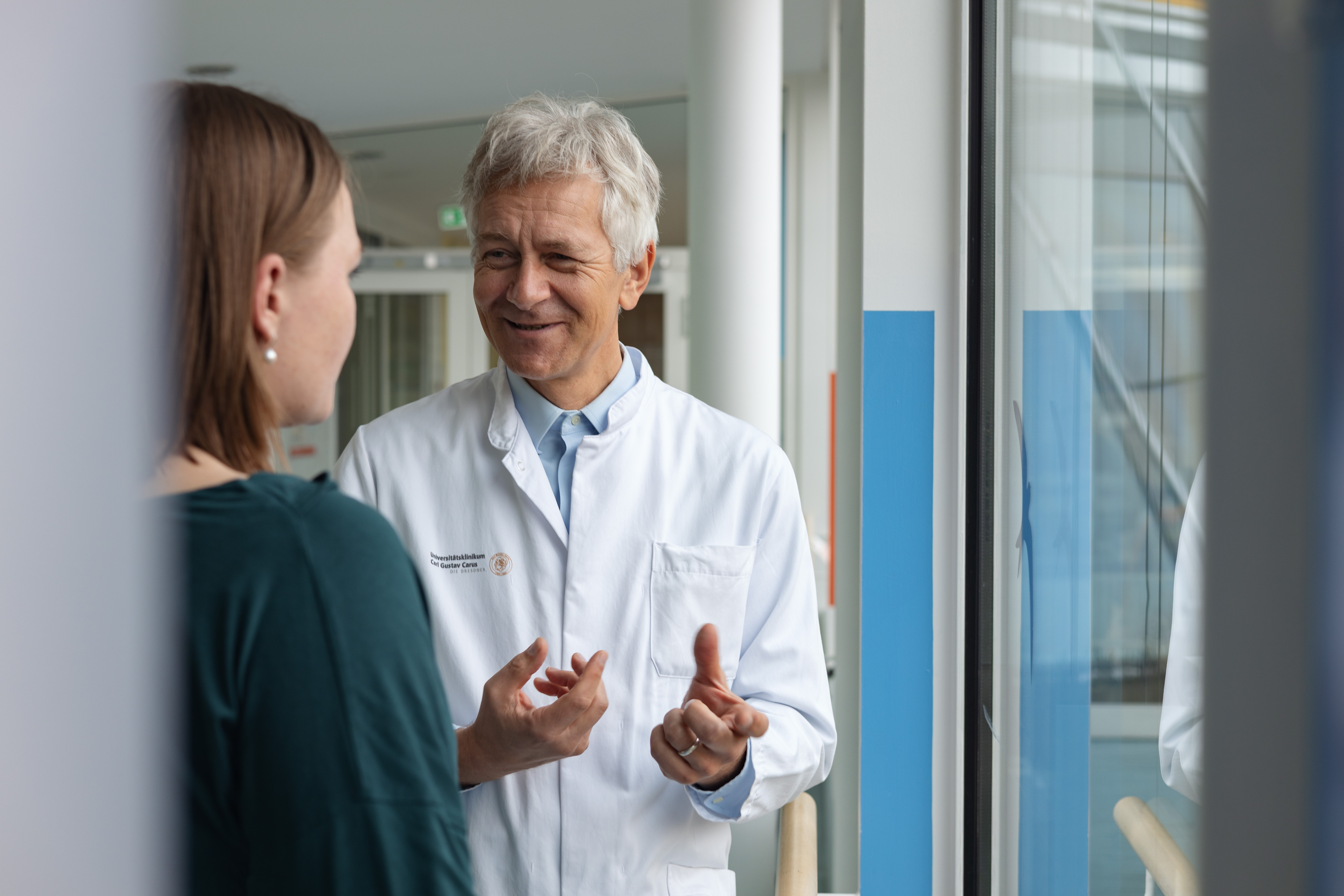 The now published long-term analysis [1] supports the initial results of the ASAP trial [2]. The findings suggest, that a transplantation as soon as possible yields comparable treatment outcomes as remission induction – with shorter hospital stays and reduced exposure to chemotherapy [1]. “The results question the international standard of leukemia treatment. We no longer need to give all patients a very aggressive chemotherapy to reduce the tumor burden ahead of transplantation when regimens with good anti-leukemic activity are used for conditioning on the days prior to stem cell transplantation,” says Prof. Dr. Johannes Schetelig, coauthor of the study.