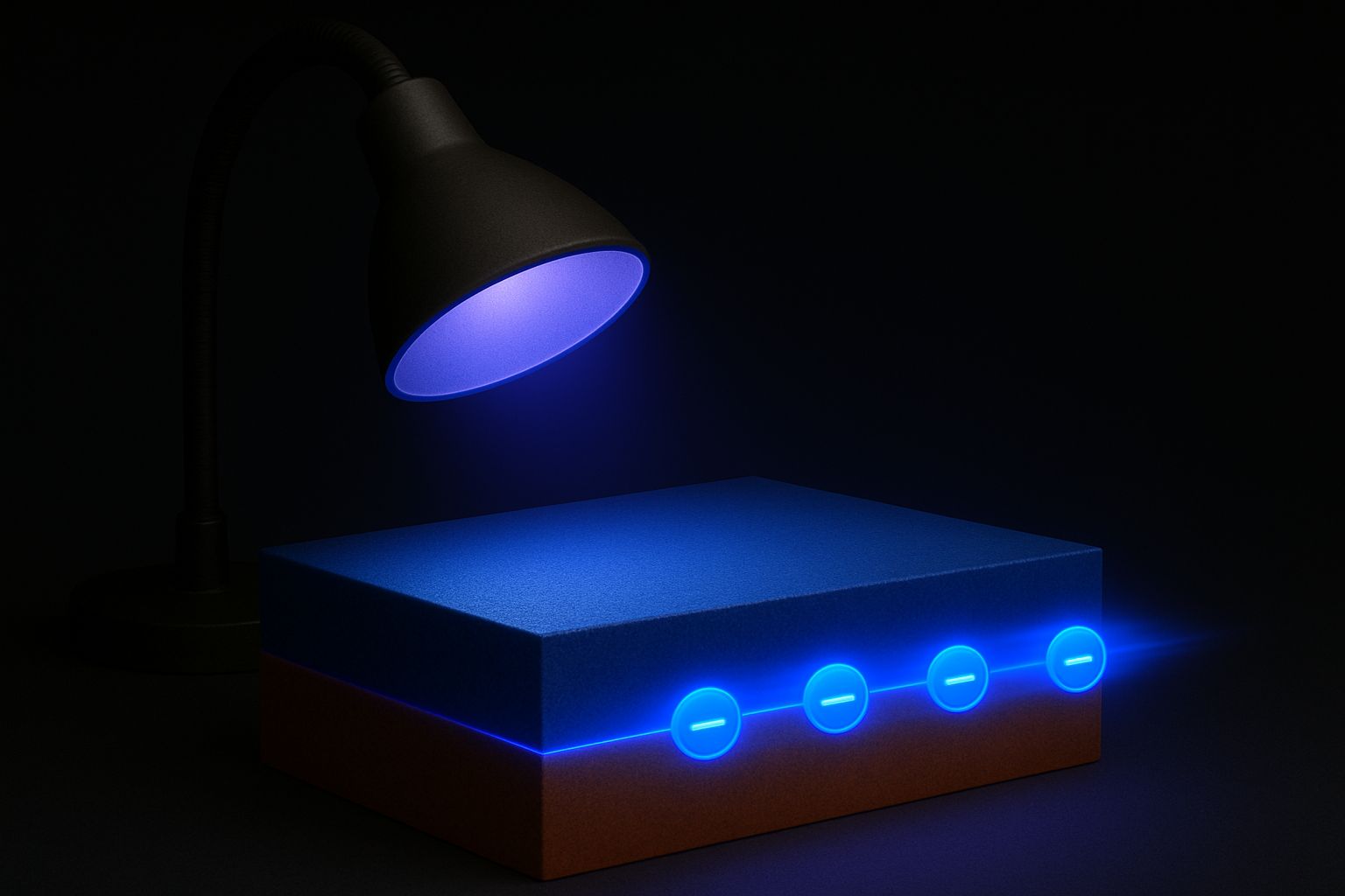 „Wird das Licht eingeschaltet, verändert sich das Material schlagartig: Der elektrische Widerstand sinkt um bis zu ein Hunderttausendfaches – die Probe leitet plötzlich rund 100.000-mal besser“, erklärt Pentcheva. Möglich macht das ein winziges elektrisches Feld an der Grenzfläche, das die durch UV-Licht freigesetzten Elektronen wie auf einer unsichtbaren Schiene in einer hauchdünnen Schicht sammelt. Dort können sie sich besonders leicht bewegen und bilden das leitfähige Elektronengas. Sobald das Licht ausgeschaltet wird, verschwindet dieser Zustand wieder vollständig – das Material kehrt in seinen Ausgangszustand zurück.