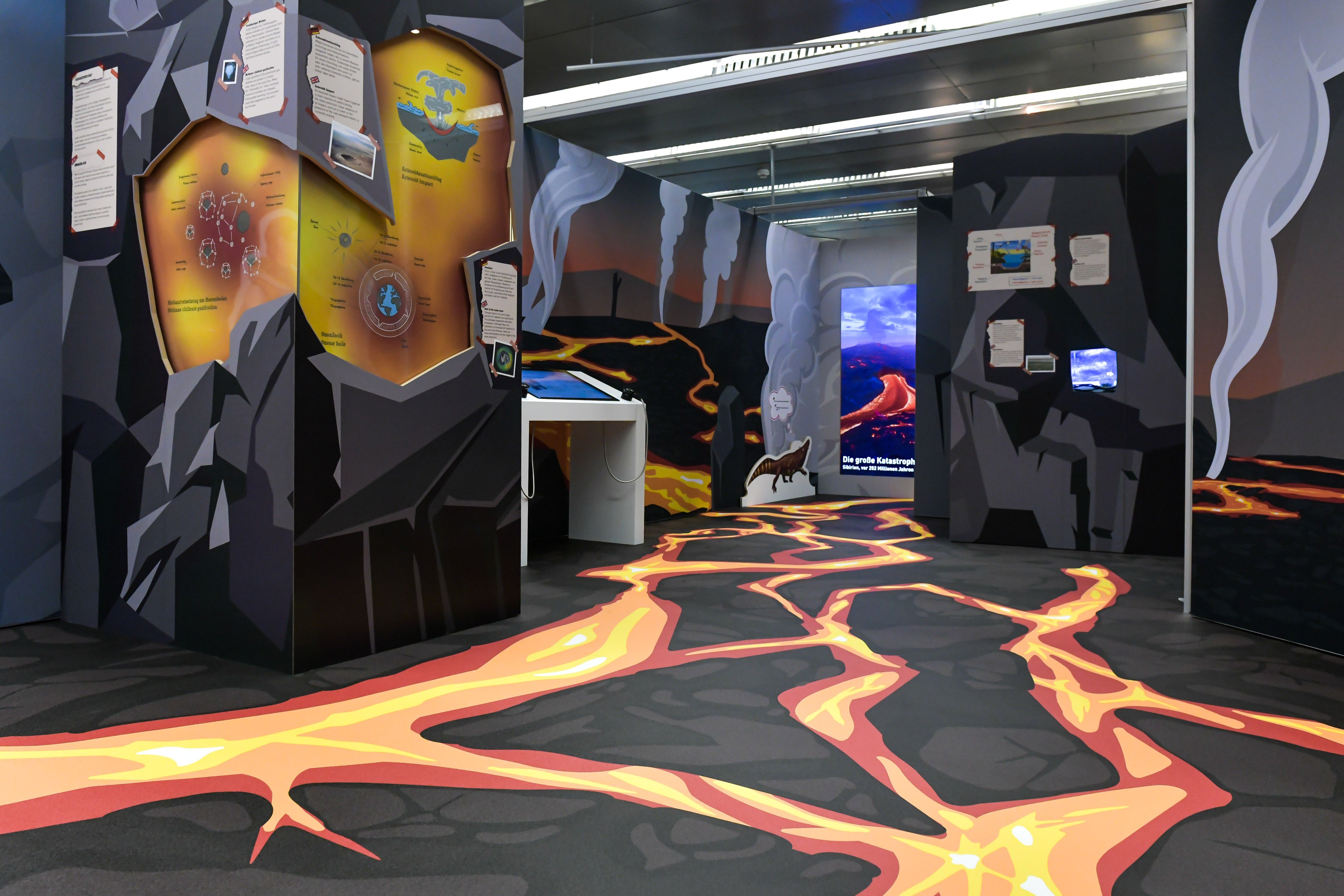 In einem Rundgang erfahren die Besuchenden in acht Bereichen wie sich das Leben nach der Perm-Trias-Katastrophe neu entwickelt hat und die Saurier zu den dominierenden Lebewesen wurden. Dabei werden nicht nur die Tiere und Pflanzen dieser Zeit, sondern auch die Menschen und Arbeitsweisen vorgestellt, die dieses Wissen erst ermöglichen. Schließlich wüsste man ohne Forscher*innen, Sammler*innen und Präparator*innen kaum etwas über den Verlauf der Erdgeschichte. Wer sich selbst als Forscher*in versuchen möchte, kann in der Ausstellung mit einem Expeditionsheft Rätsel lösen oder an interaktiven Stationen sein Wissen vertiefen.
