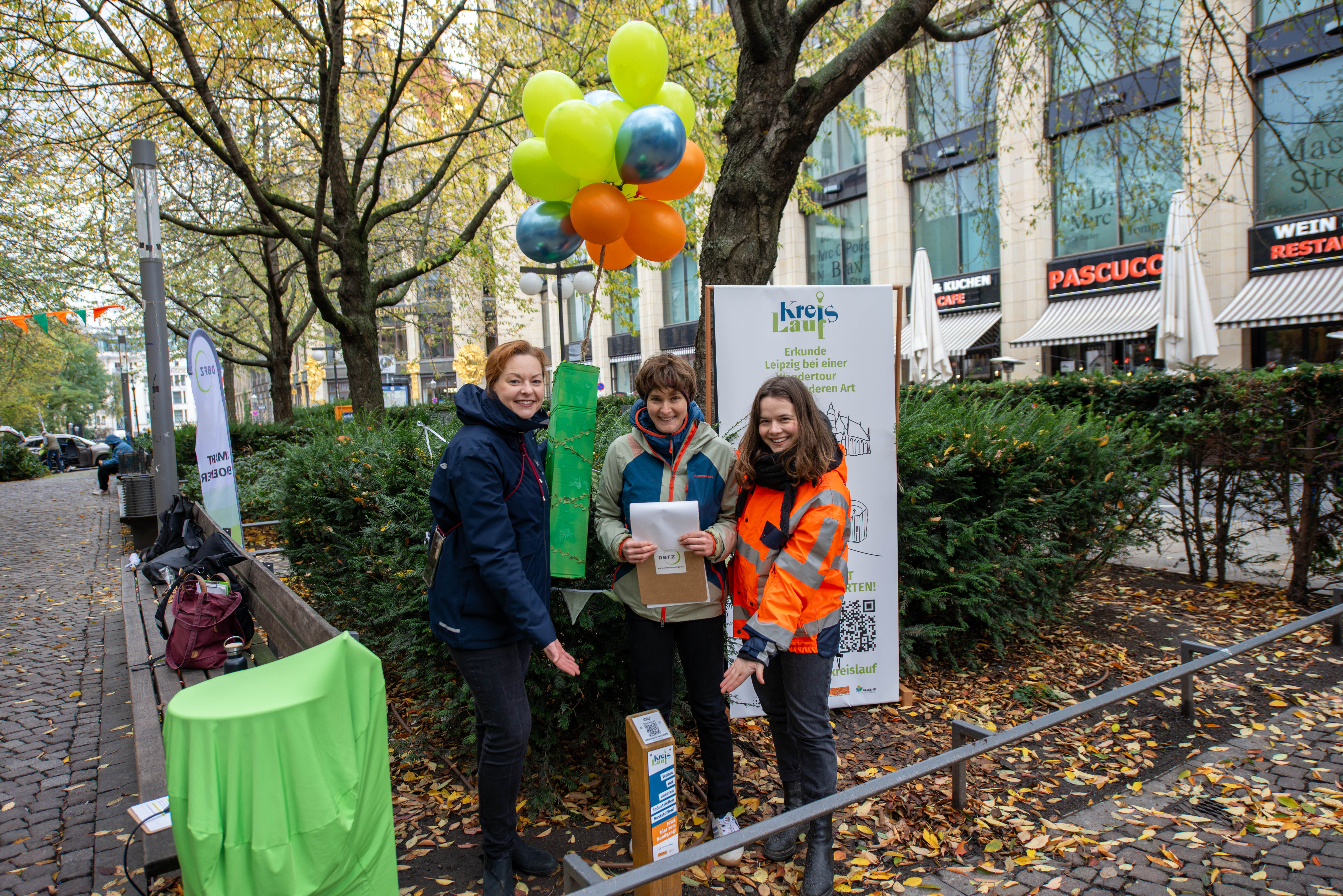 Bei einem LiveWalk durch die Leipziger Innenstadt stellten Fachleute des DBFZ und der Stadtreinigung Leipzig den Rundgang am 24. Oktober 2025 interessierten Bürgerinnen und Bürgern vor. Die Tour führte zu mehreren Stationen, an denen Fachleute erläuterten, wie biogene Rest- und Abfallstoffe länger im KreisLauf gehalten werden können.