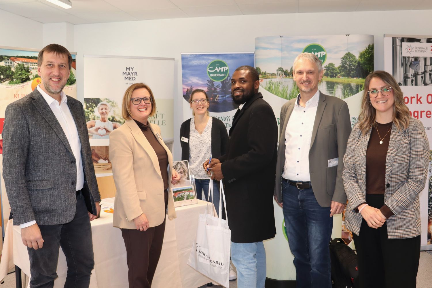Das Branchenspektrum der anwesenden Unternehmen reichte von Technik und Bau über Tourismus bis zur Gesundheit. Die Hälfte der Firmen nutzte die Gelegenheit, sich in einer Vorstellungsrunde zu präsentieren. Allesamt warben an Messeständen im kompletten Erdgeschoß des Laborgebäudes für sich. Es herrschte ein Kommen und Gehen.