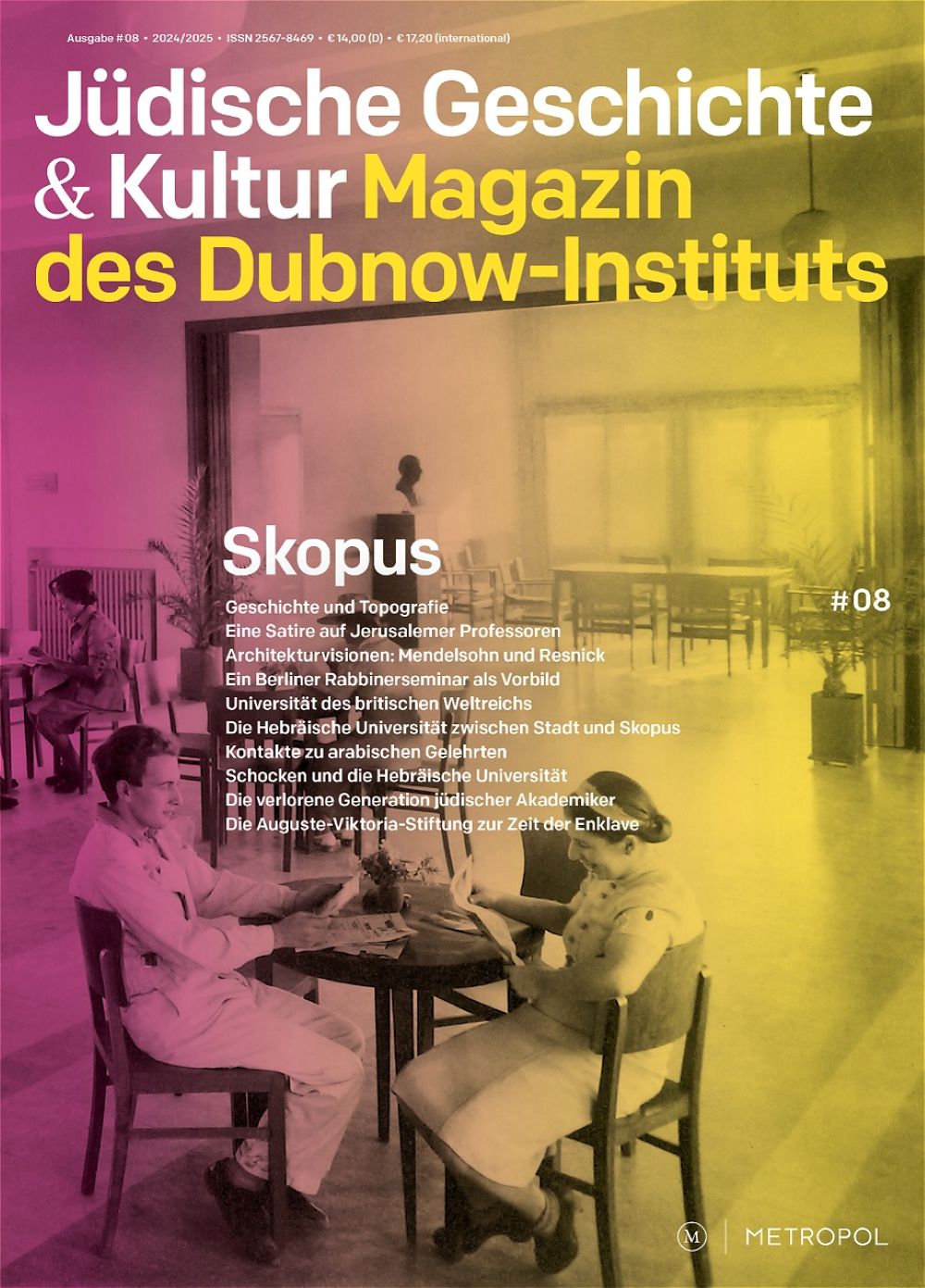 Im Zentrum der neuen Ausgabe von Jüdische Geschichte & Kultur. Magazin des Dubnow-Instituts« steht der Berg Skopus – Gründungsort der Hebräischen Universität und symbolträchtiger Aussichtspunkt auf Jerusalem. Geöffnet wird der Blick auf die Kontinuität einer bis in die Gegenwart fortwirkenden Krisenhaftigkeit.