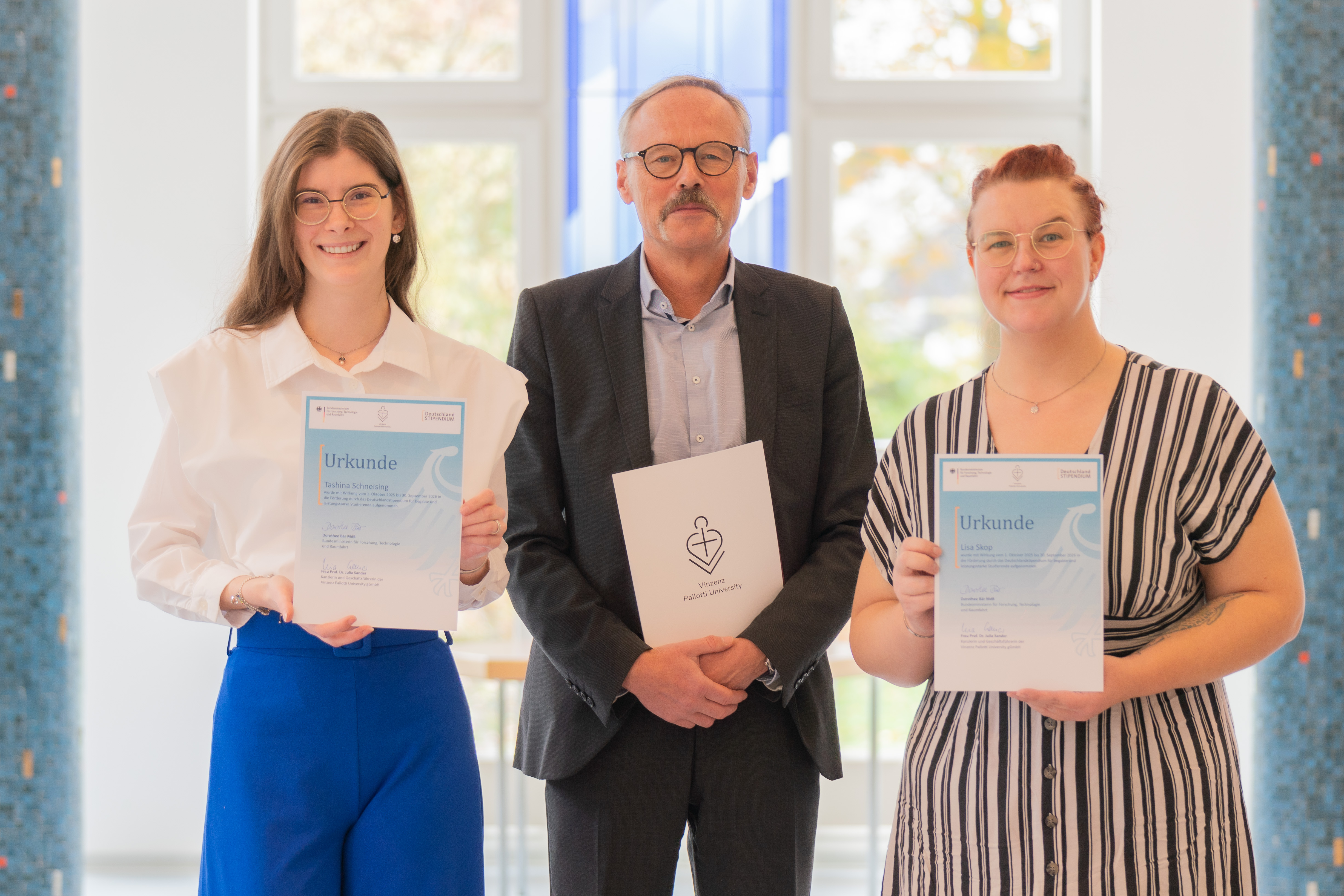 Vier Studierende der Vinzenz Pallotti University werden im Förderzeitraum 2025/26 aufgrund ihrer sehr guten Studienleistungen und ihrem besonderen außerfachlichen Engagement mit dem Deutschlandstipendium unterstützt.