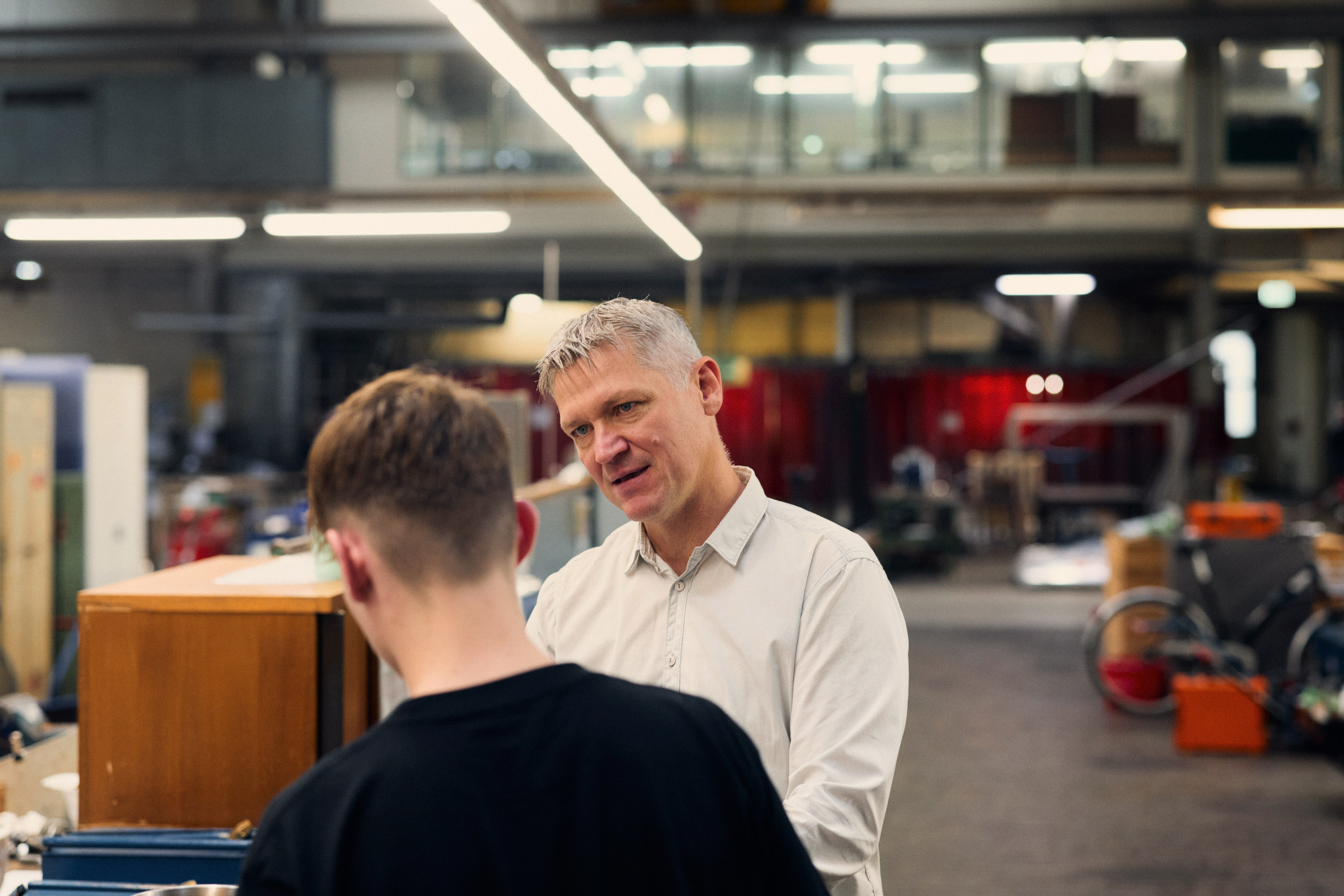 Hätte er also lieber gleich studiert? Der Ingenieur schüttelt entschieden den Kopf und bittet zum Rundgang durch die weitläufige Werkstatt. „Die Ausbildung war eine super Grundlage, ich kenne die Praxis aus eigener, langjähriger Erfahrung.“ Mario Figura macht an einem Werkplatz halt, ein Auszubildender hat eine Frage. „Und die Mitarbeitenden wissen auch, dass ich weiß, wovon ich rede – man wird also in der Werkstatt ernstgenommen“, sagt er mit einem Augenzwinkern. Er würde es deshalb genau so wieder machen: „Gerade wer in den praktischen Bereich möchte, kann gut mit einer Ausbildung starten und später noch studieren, sogar neben dem Beruf. Mit dem tollen Angebot an der HSBI hat man die Möglichkeit!“