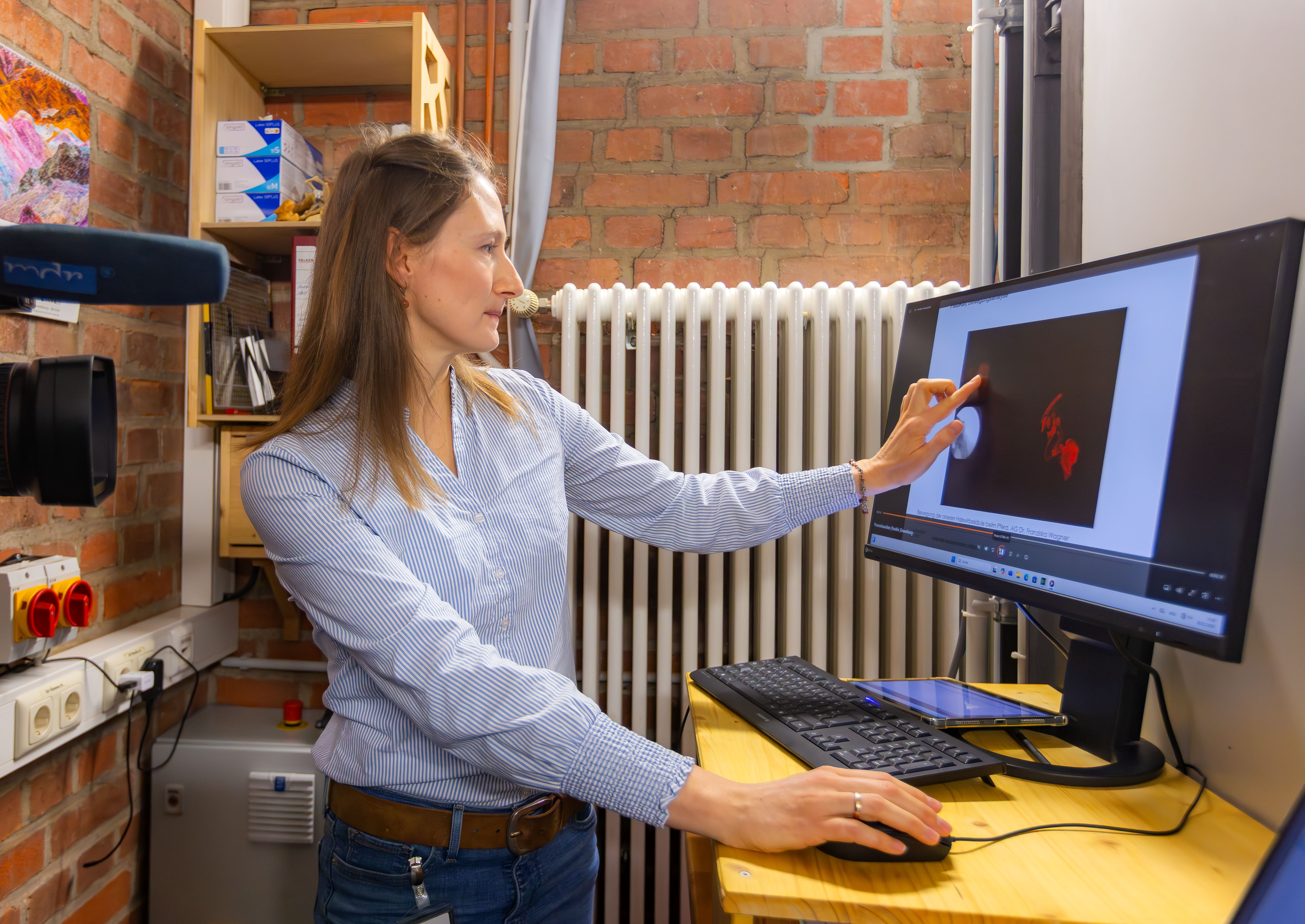 Entscheidende Fortschritte bei der Aufklärung dieser Krankheitsbilder soll die Bewegungsanalyse mit der neuen FluoKin-Anlage bringen, betont die Tierärztin. „Unsere Patienten sollen sich bewegen. Es ist egal, ob sie laufen, kauen oder klettern“, sagt Wagner, die bei der Untersuchung der Tiere trotz der schwachen Röntgenstrahlung einen bleiernen Schutzanzug trägt.