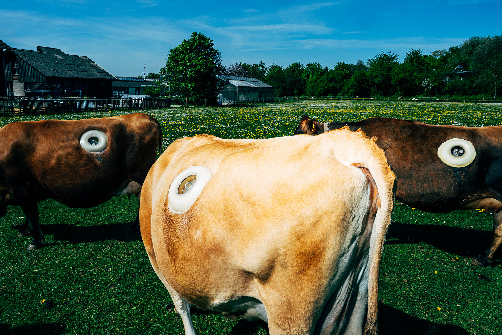 Aus diesem Interesse heraus wandte sich Teryoshin 2024 auch an die Universität Hohenheim mit dem Wunsch, die Hohenheimer Versuchskühe mit sogenannter „Pansenfistel“ zu fotografieren. Dabei handelt es sich um eine künstliche Öffnung mit Silikonverschluss an der Flanke der Kuh.
