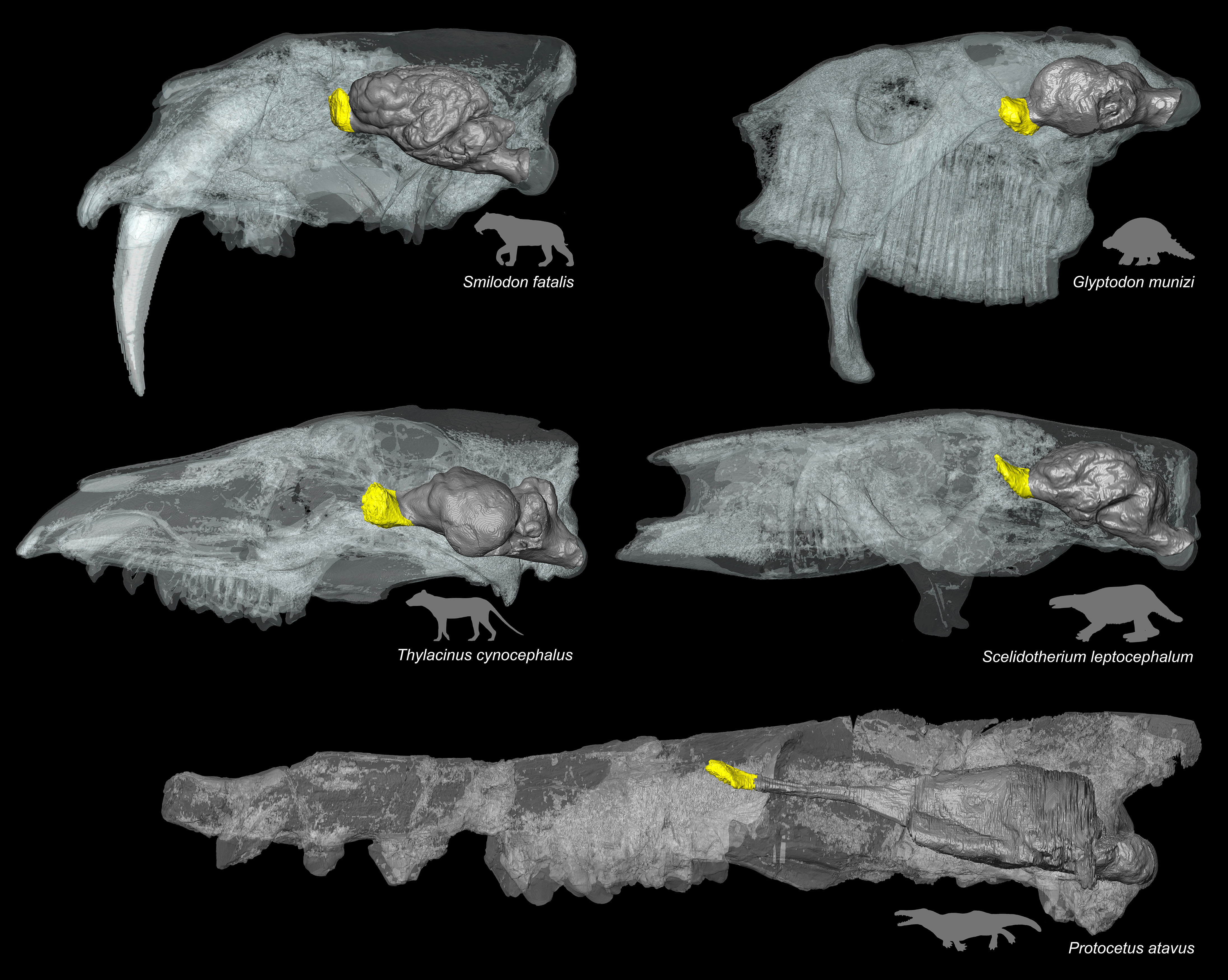 The sense of smell is vital for animals, as it helps them find food, protect themselves from predators and interact socially. An international research team led by Dr Quentin Martinez and Dr Eli Amson from State Museum of Natural History Stuttgart has now discovered that certain areas of the brain skull allow conclusions to be drawn about the sense of smell in mammals. Particularly significant is the volume of the endocast of the olfactory bulb, a bony structure in the skull that is often well preserved even in very old fossils. This volume is closely related to the number of intact odour receptor genes – an important indicator of olfactory ability. This allows the sense of smell to be estimated even in extinct species such as early whales, sabre-toothed cats or the Tasmanian tiger, also known as the thylacine. The study, which provides a reliable method for reconstructing the sense of smell in extinct mammals, was published in the journal ‘Proceedings of the National Academy of Sciences’ (PNAS).