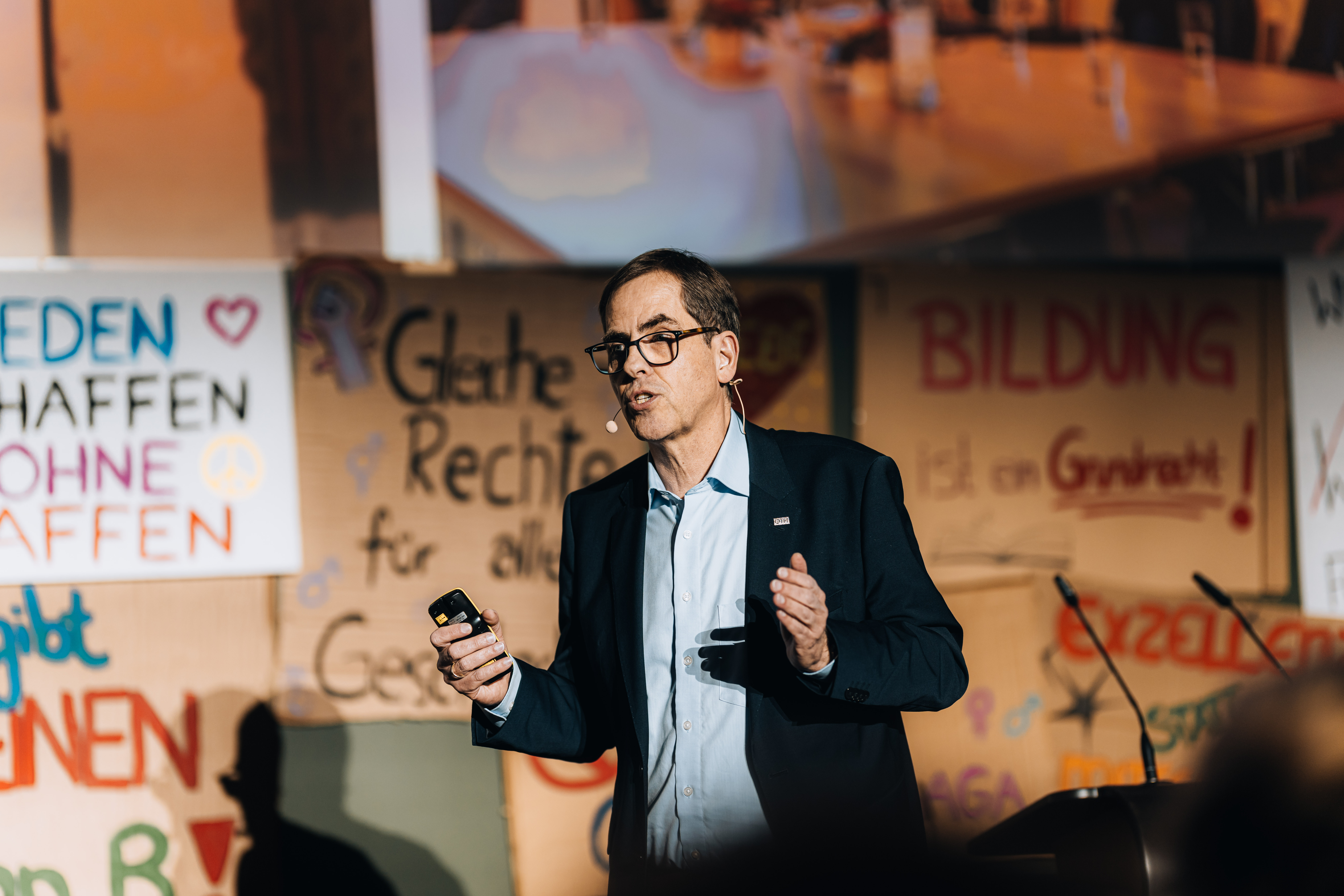 Im Bereich Studium und Lehre zeichnete er ein differenziertes Bild: rückläufiges Interesse an technischen Studiengängen, gleichzeitig steigende Masterzahlen, neue englischsprachige Studiengänge und gezielte Nachwuchsinitiativen, vom Forscherinnencamp bis zur First Lego League.