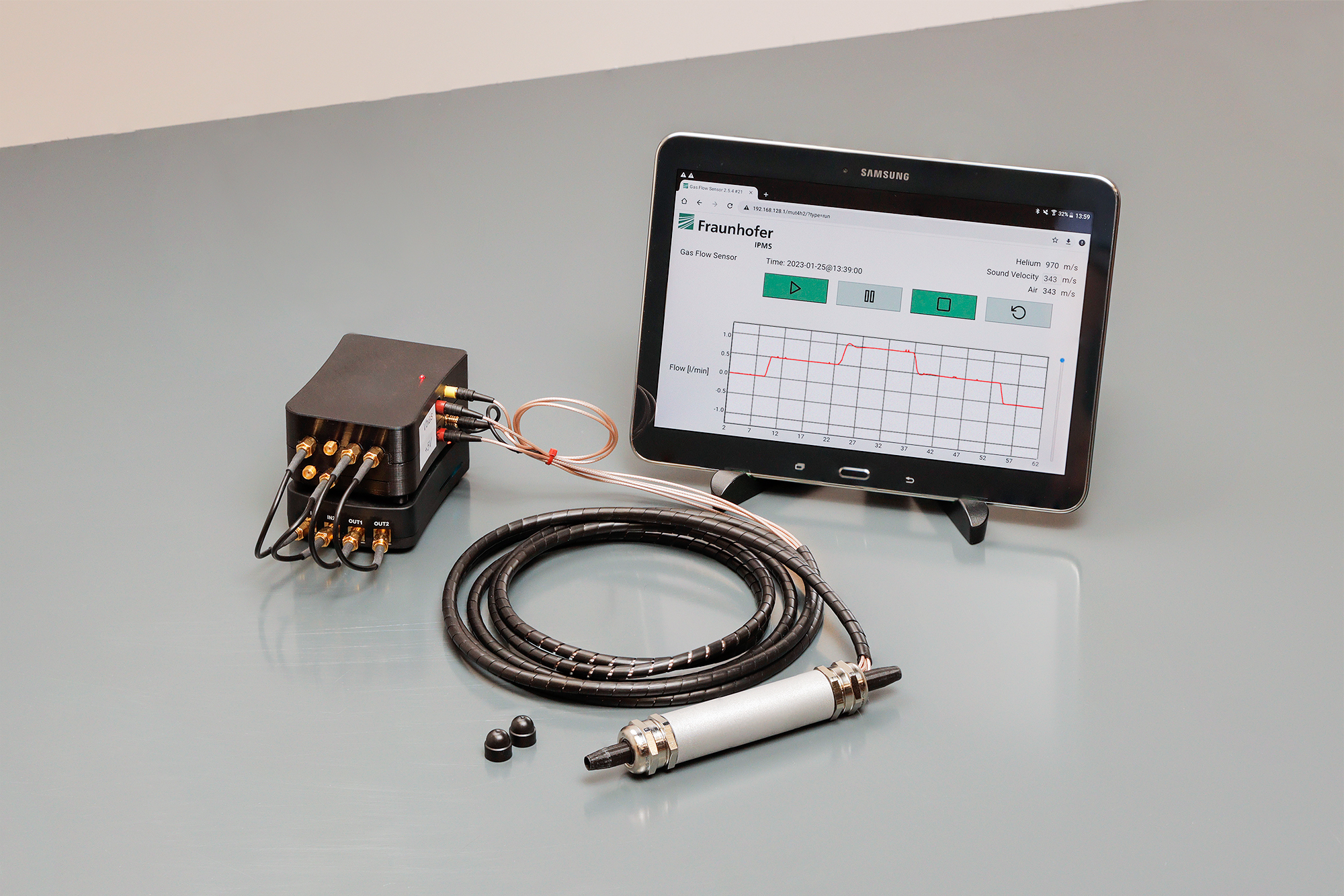 Ein zweiter Schwerpunkt liegt auf der Entwicklung eines neuartigen Sicherheitsmonitorings für die Wasserstoffwirtschaft. Da Wasserstoff als Energieträger zunehmend an Bedeutung gewinnt, müssen Risiken wie Leckagen zuverlässig erkannt werden. Die im Projekt entwickelten Ultraschallsensoren ermöglichen eine schnelle, kontinuierliche und präzise Detektion in einem umfassenden Konzentrationsbereich von 1% bis 100%. Dr. Sebastian Meyer beschreibt die Vorteile der Sensoren wie folgt: »Sie zeichnen sich durch eine hohe Temperaturstabilität sowie einen geringen Wartungsaufwand aus, da sie ohne regelmäßige Kalibration zuverlässig arbeiten. Zudem erreichen sie eine Messgenauigkeit von unter zwei Prozent. Neben der sicheren Überwachung von Explosionsgrenzen wird die räumliche Wasserstoffverteilung im Erfassungsbereich des Sensors detektiert. Somit kann auf die räumliche Herkunft eines Wasserstofflecks geschlossen werden. Die eingesetzte KI-gestützte Auswertung erhöht die Messgenauigkeit, die Robustheit und die Langzeitstabilität. Durch den hohen Integrationsgrad und CMOS-kompatible Fertigungsverfahren sind elektronische Komponenten zudem direkt mit dem Sensor integrierbar.«