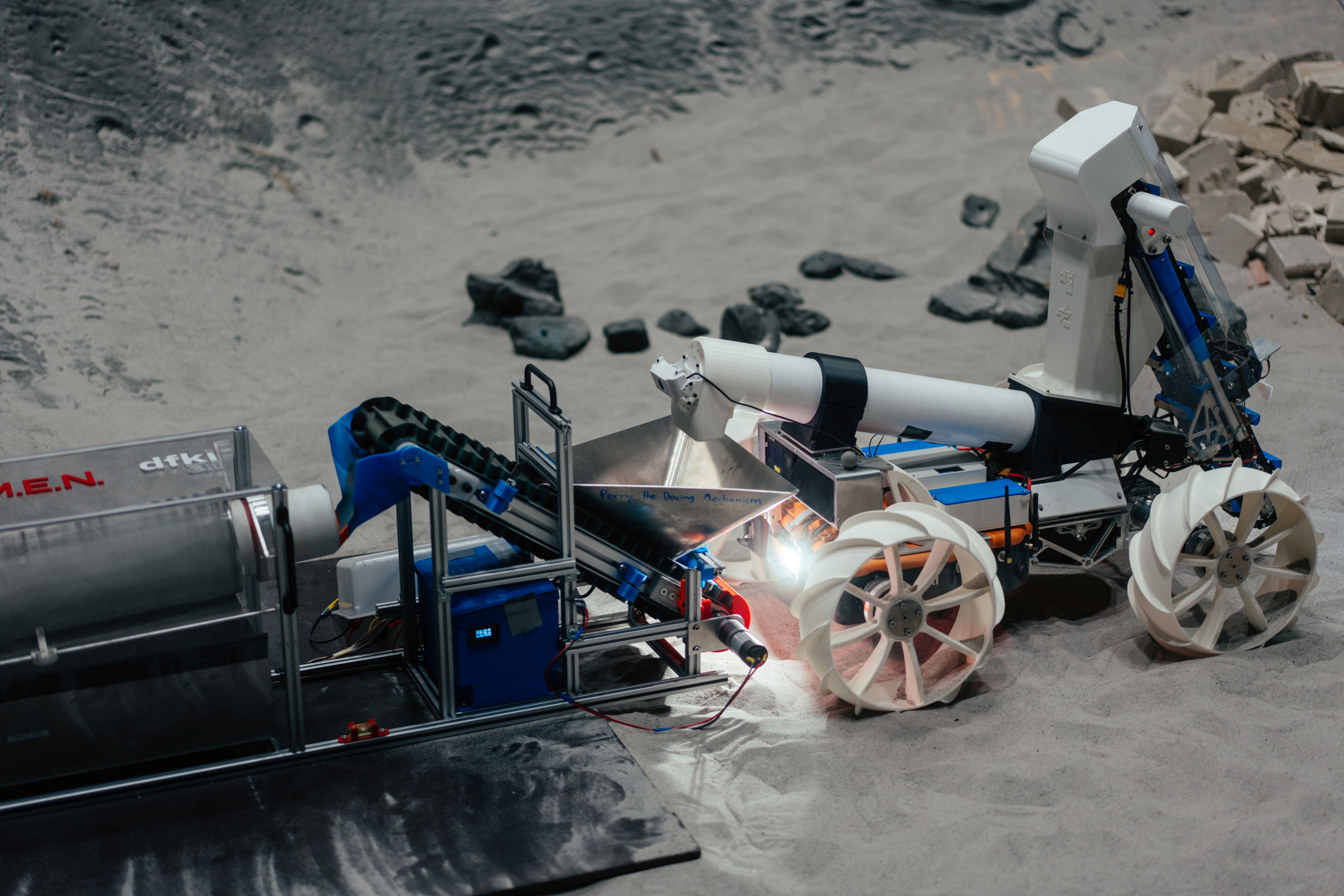 „Der Wettbewerb hat uns die Chance gegeben, unter realistischen Bedingungen zu demonstrieren, wie Materialverarbeitung auf dem Mond zukünftig funktionieren kann. Die Kombination aus DLR-Expertise in der Regolithverarbeitung und DFKI-Kompetenz in der mobilen Robotik hat sich als starkes Fundament für diesen Erfolg erwiesen.“