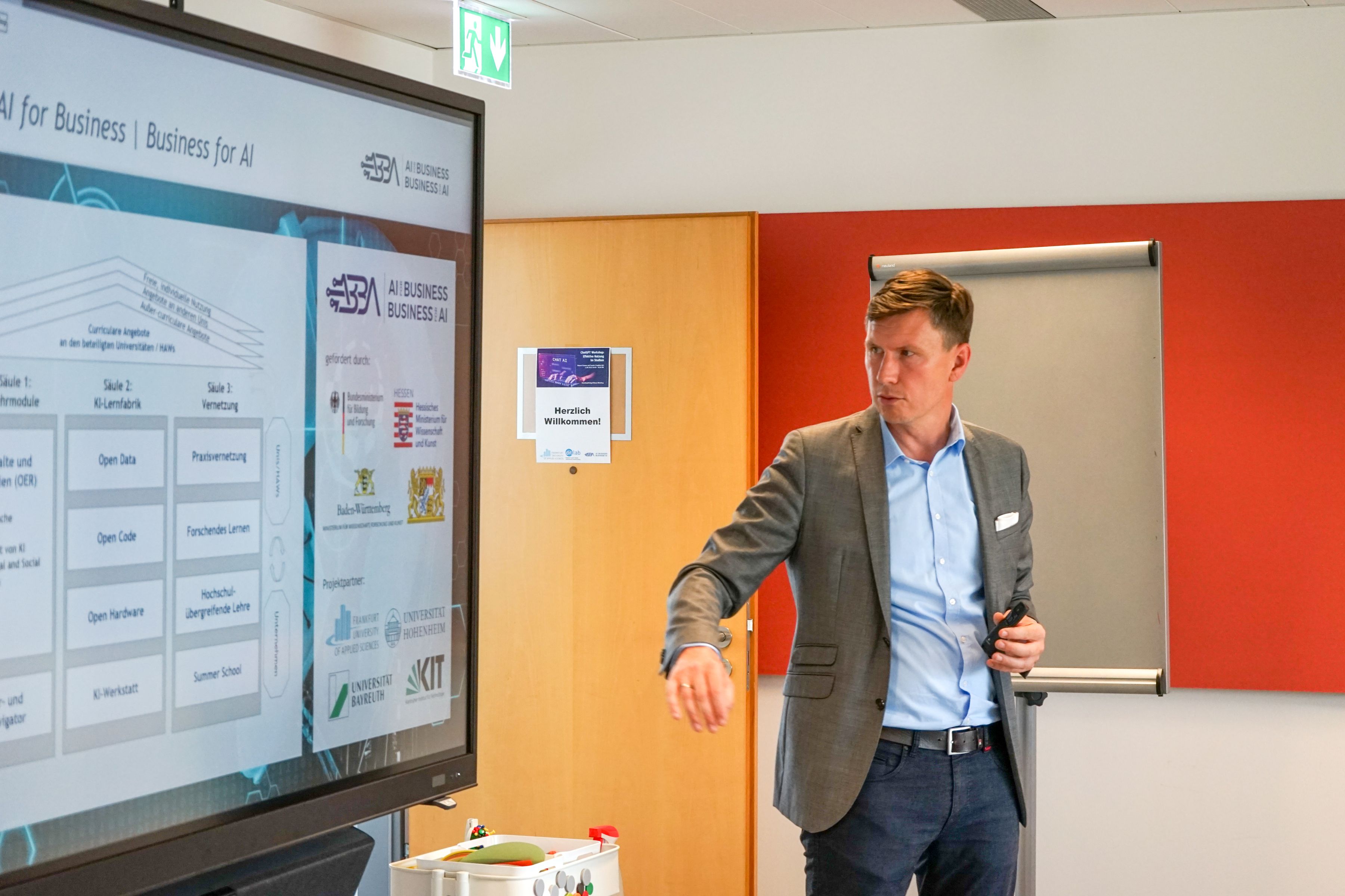 Das Verbundprojekt ABBA wurde von der Universität Hohenheim koordiniert. Es adressierte Wirtschaftswissenschaftler*innen und wurde im Rahmen der Förderinitiative „Künstlichen Intelligenz in der Hochschulbildung“ vom Bundesministerium für Forschung, Technik und Raumfahrt (BMFTR) sowie den Wissenschaftsministerien der Länder Baden-Württemberg, Bayern und Hessen unterstützt. Von der Fördersumme über 4,24 Millionen Euro entfielen auf die Frankfurt UAS rund 500.000 Euro. Die Frankfurt UAS hat innerhalb des Verbunds wichtige Impulse sowohl in der Lehre als auch in der regionalen Praxisvernetzung gesetzt. An der Hochschule wurden drei KI-bezogene Lehrveranstaltungen neu geschaffen, bzw. wesentlich weiterentwickelt, darunter „Management KI-basierter Systeme“. Die Formate verbinden technologische Grundlagen mit betrieblichen Anwendungen und ermöglichen Studierenden damit einen fundierten und anwendungsnahen Zugang zum Thema Künstlichen Intelligenz. Bei einem Prompt-a-Thon konnten Studierende 2024 zudem intensiv mit Hilfe generativer KI Problemlösungen erarbeiten. Darüber hinaus bot die Frankfurt UAS mit zahlreichen Workshops, Vorträgen und Weiterbildungen Akteuren aus Wirtschaft und Verwaltung die Möglichkeit, sich mit aktuellen Entwicklungen und Einsatzpotenzialen von KI auseinanderzusetzen – etwa beim digital future dialogue.