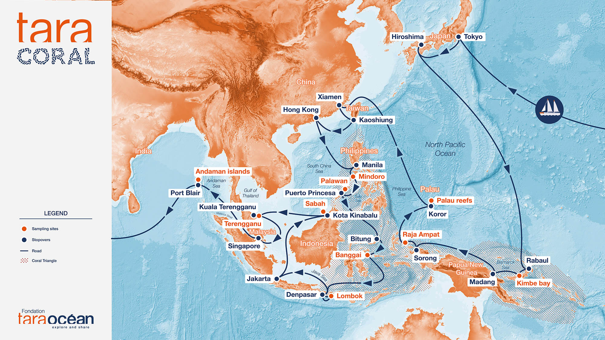 Bildunterschrift: Das Forschungsschiff Tara ist 18 Monate lang im sogenannten Korallendreieck im Westpazifik unterwegs.