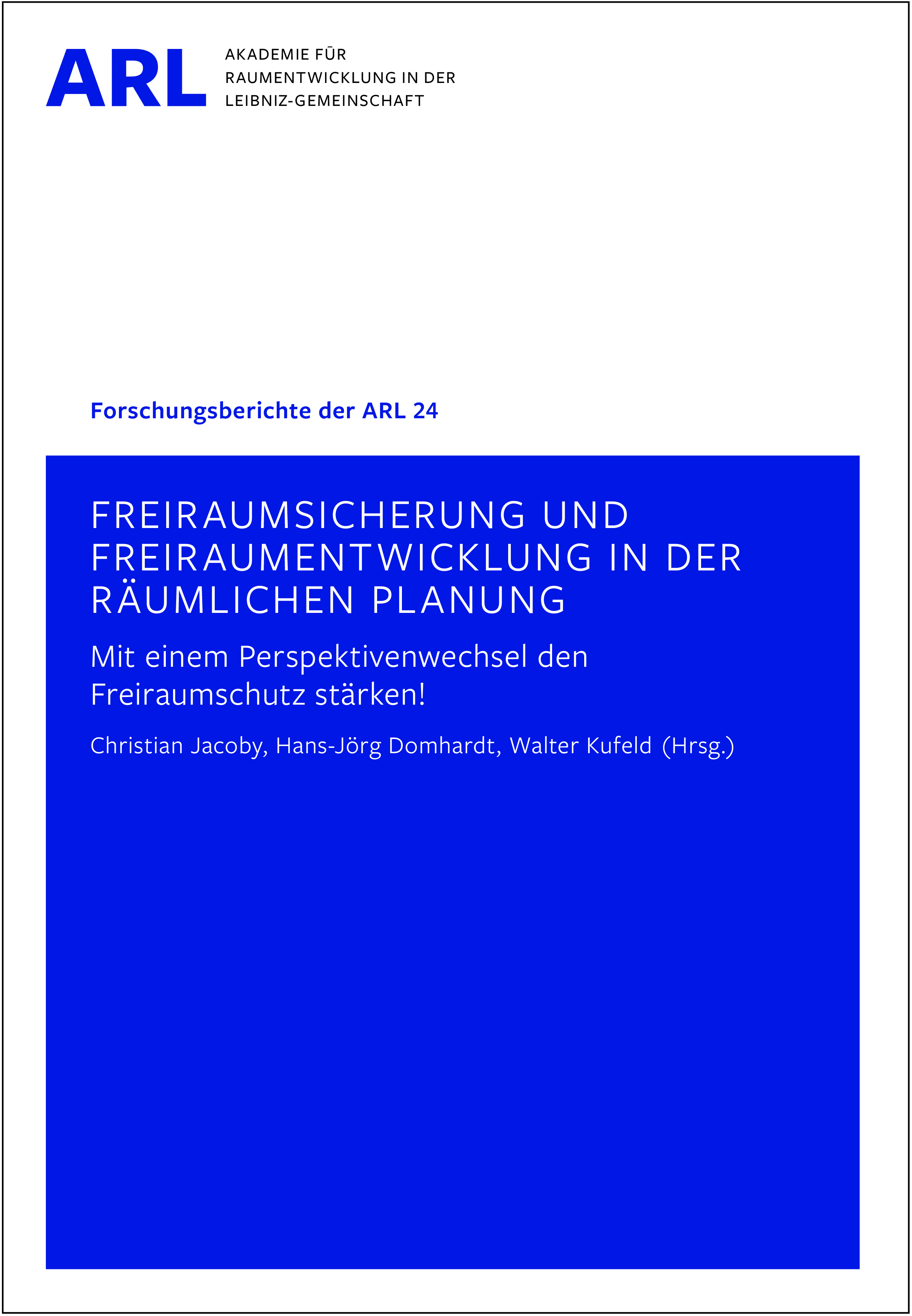 Jacoby, Christian; Domhardt, Hans-Jörg; Kufeld, Walter (Hrsg.) (2025): Freiraumsicherung und Freiraumentwicklung in der räumlichen Planung – Mit einem Perspektivenwechsel den Freiraumschutz stärken! Hannover. = Forschungsberichte der ARL 24. https://doi.org/10.60683/0ddp-qe87