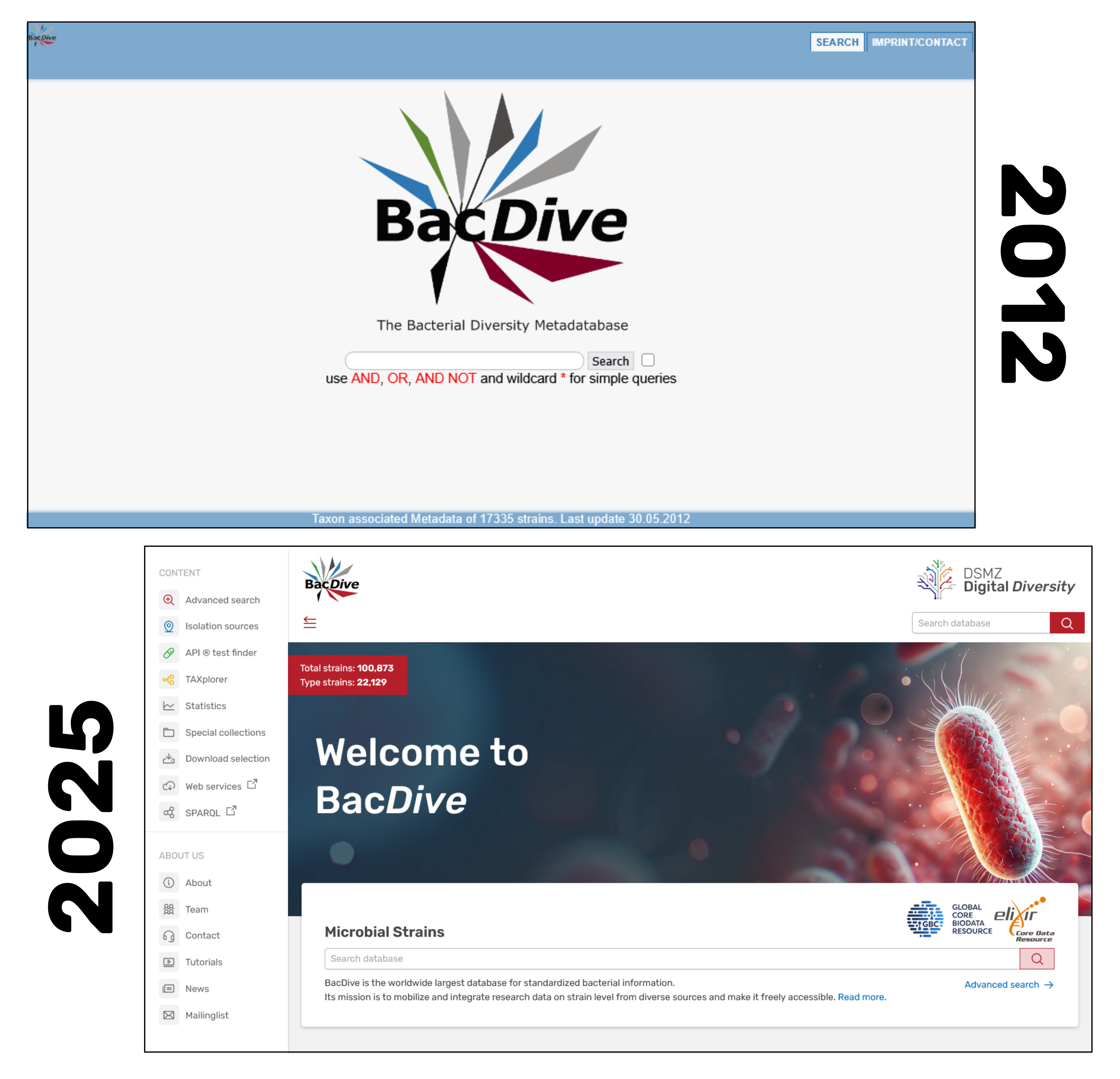 BacDive has been selected as an ELIXIR Core Data Resource as well as a Global Core Biodata Resource. Its mission is to mobilize and make freely available strain-level research data from various sources. BacDive is an central part of the DSMZ Digital Diversity platform, hosted by the Leibniz Institute DSMZ-German Collection of Bioresources and Cell Cultures in Braunschweig, Germany. With the 2025 release, BacDive has reached a special milestone: the database now contains information on more than 100,000 strains.