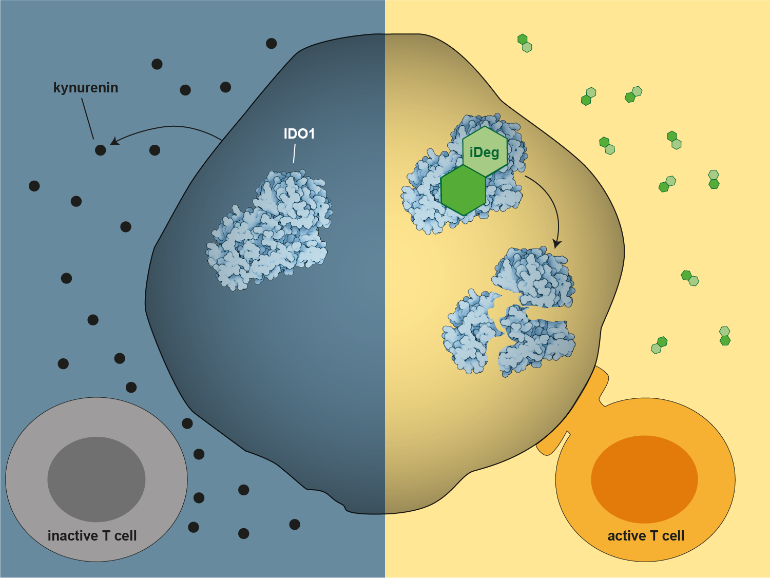Cancer cells employ a variety of strategies to evade the immune system, and modern immunotherapies aim precisely at these escape mechanisms. However, such therapies are not always successful. A research team led by Herbert Waldmann at the Max Planck Institute for Molecular Physiology in Dortmund and Georg Winter at the AITHYRA Institute in Vienna has now developed a new class of compounds that specifically target and destroy the enzyme IDO1—a key molecular switch that tumours use to suppress immune responses. They were also able to show that iDegs inhibit tumour growth in mice with SKOV-3 tumours, thereby prolonging survival time. This approach could markedly enhance the efficacy of existing immunotherapies and open new avenues in the fight against cancer.