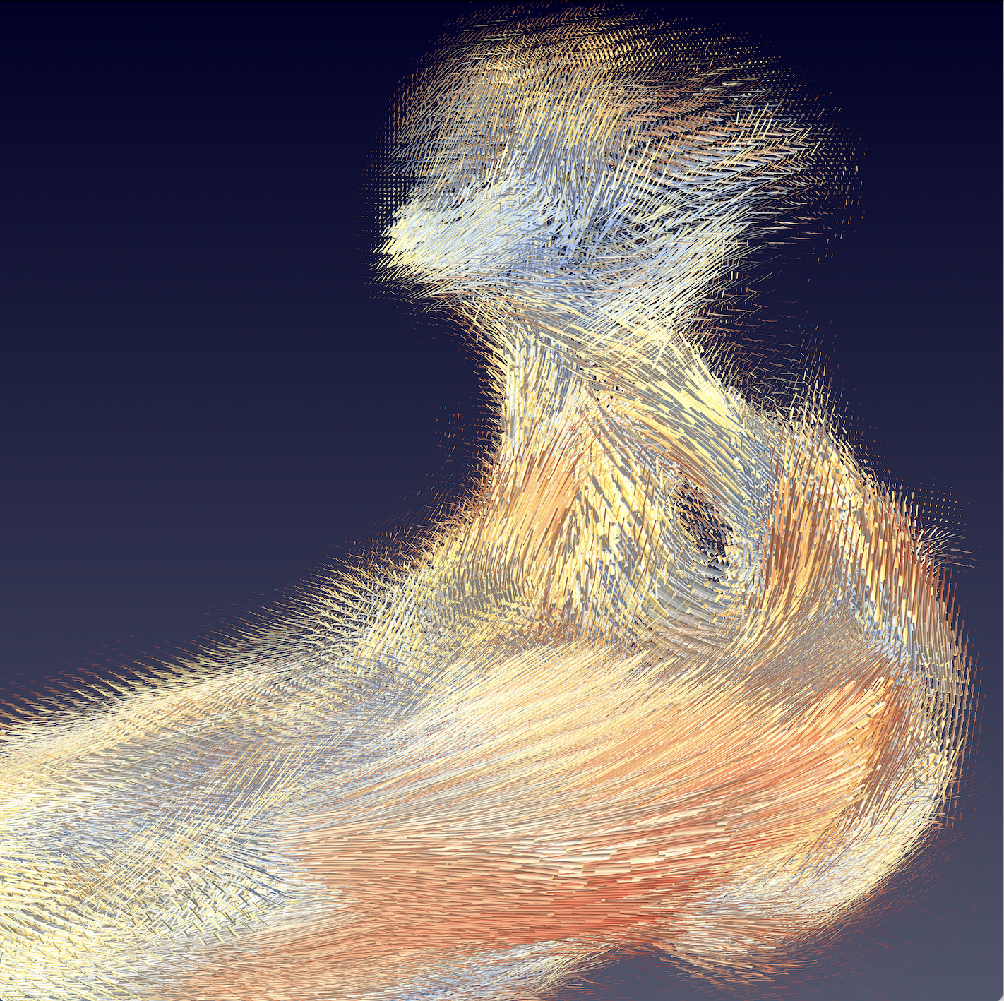Besonders aufschlussreich sind dabei die Kollagenstrukturen und deren räumliche Ausrichtung im Knochen. Im Knochen erfüllt das Protein Kollagen die Aufgabe des Stahlgeflechts im Stahlbeton: Es sorgt für Stabilität und zugleich Elastizität. Die Richtung der Kollagenfasern kann Aufschluss darüber geben, wie eine Prothese am besten anzubringen ist. Aus den Interferenzmustern, die beim Röntgenrastern aufgenommen wurden, konnte das Computerprogramm errechnen, wie die Kollagenfasern durchschnittlich in vielen winzigen, nur 20 mal 20 mal 20 Mikrometer grossen Abschnitten des Ambosses ausgerichtet sind. Zum Vergleich: Ein menschliches Haar hat einen Durchmesser von etwa 50 Mikrometer.