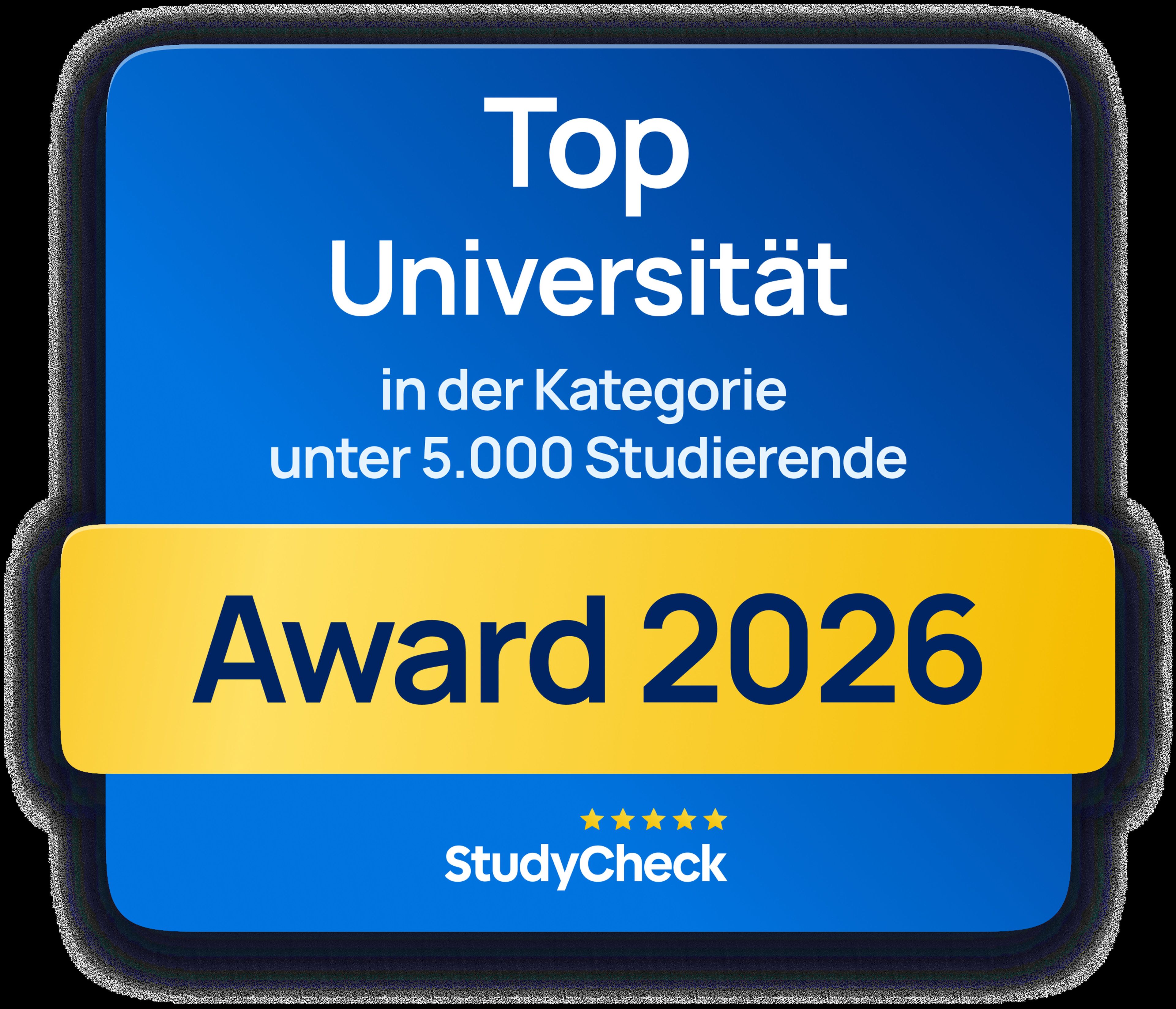 Die Technische Universität Ilmenau gehört zu den Gewinnern des StudyCheck Awards 2026. In der Kategorie unter 5.000 Studierende erreichte sie im bundesweiten Vergleich als „Top Universität“ Platz 8. Der StudyCheck Award ist ein unabhängiges Hochschulranking des Bewertungsportals StudyCheck.de, das jedes Jahr die beliebtesten Universitäten und Fachhochschulen in Deutschland auszeichnet. Grundlage der Rangliste sind ausschließlich Meinungen der Studierenden. Der StudyCheck Award gilt als renommiertes Siegel, das die Qualität von Lehre und Campusleben aus studentischer Sicht widerspiegelt.