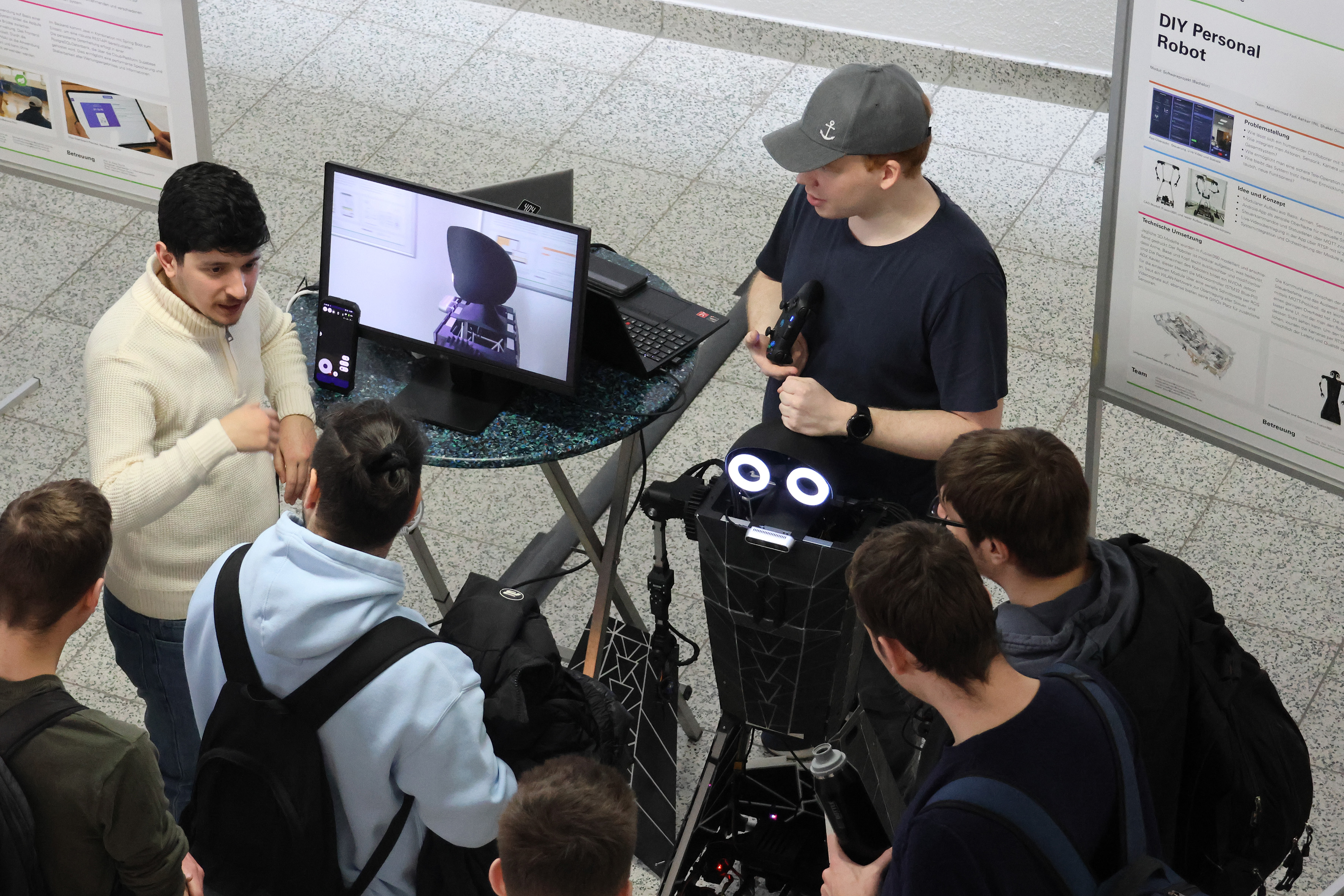 DIY Personal Robot: Wie sich ein humanoider DIY-Roboter mit 3D-Druck und Eigenbau realisieren lässt, beantwortete das Team „DIY Personal Robot“ in seinem Projekt. Die Studierenden modellierten und druckten nicht nur alle erforderlichen Bauteile und übernahmen die Konstruktion, sie implementierten auch die notwendige Technik und programmierten eine App zur Steuerung des Roboters.