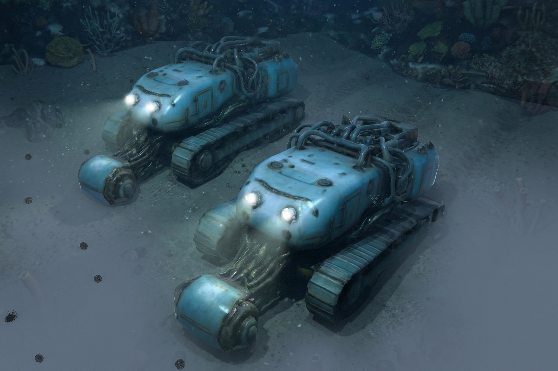 Doch der Schein eines intakten Ökosystems trügt, denn schnell werden die Spuren menschlichen Eingreifens sichtbar: Der Tiefsee-Bergbau hat bereits begonnen. Das Projekt thematisiert den Abbau von Manganknollen – wert-volle Rohstoffe, die für moderne Elektronik begehrt sind, deren Gewinnung aber den Meeresboden unwiederbringlich verwüstet. In der VR-Anwendung wird dieser Konflikt schmerzhaft deutlich. Schwere Abbaufahrzeuge pflügen durch das Bild, wirbeln gigantische Staubwolken auf und hinterlassen eine Spur der Zerstörung in einem Ökosystem, das Jahrtausende zum Wachsen gebraucht hatte.