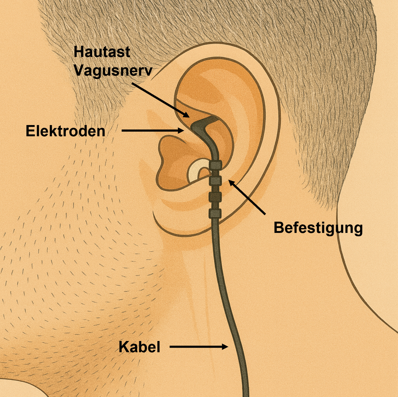„Wissenschaftlich konzentrieren wir uns auf die Stimulation des Vagusnervs von außen, da sie durch die einfache Anwendung und nur sehr geringe Nebenwirkungen ein enorm interessantes Verfahren darstellt“, erläutert der Direktor der Forschungsklinik Peter Falkai. Bei der non-invasiven transaurikulären Vagusnerv-Stimulation wird der Vagusnerv mittels sanfter elektrischer Impulse am Ohr durch die Haut gereizt. Das experimentelle Verfahren ist noch weniger etabliert als die Stimulation mit einem Implantat, es liegen kaum qualitativ hochwertige Studien zur Wirksamkeit vor, sie zeigen jedoch, dass auch diese Form der Stimulation einen positiven Effekt bei depressiven Störungen haben könnte.