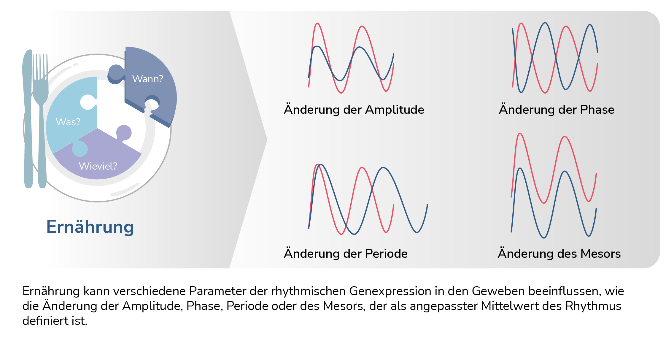 Die Analysen zeigten, dass 1.386 Gene im untersuchten Fettgewebe tageszeitlichen Oszillationen unterliegen. Viele dieser Gene sind mit dem Glukose- und Fettstoffwechsel oder mit Entzündungsprozessen assoziiert. Die Wissenschaftler*innen stellten fest, dass der Zeitpunkt der Makronährstoffaufnahme die tageszeitliche Genexpression von fast einem Drittel der oszillierenden Gene im Fettgewebe beeinflusste. Manche Gene wiesen veränderte Rhythmenparameter auf, andere stellten die Oszillation ein oder, umgekehrt, nicht-oszillierende Gene wurden zu oszillierenden.