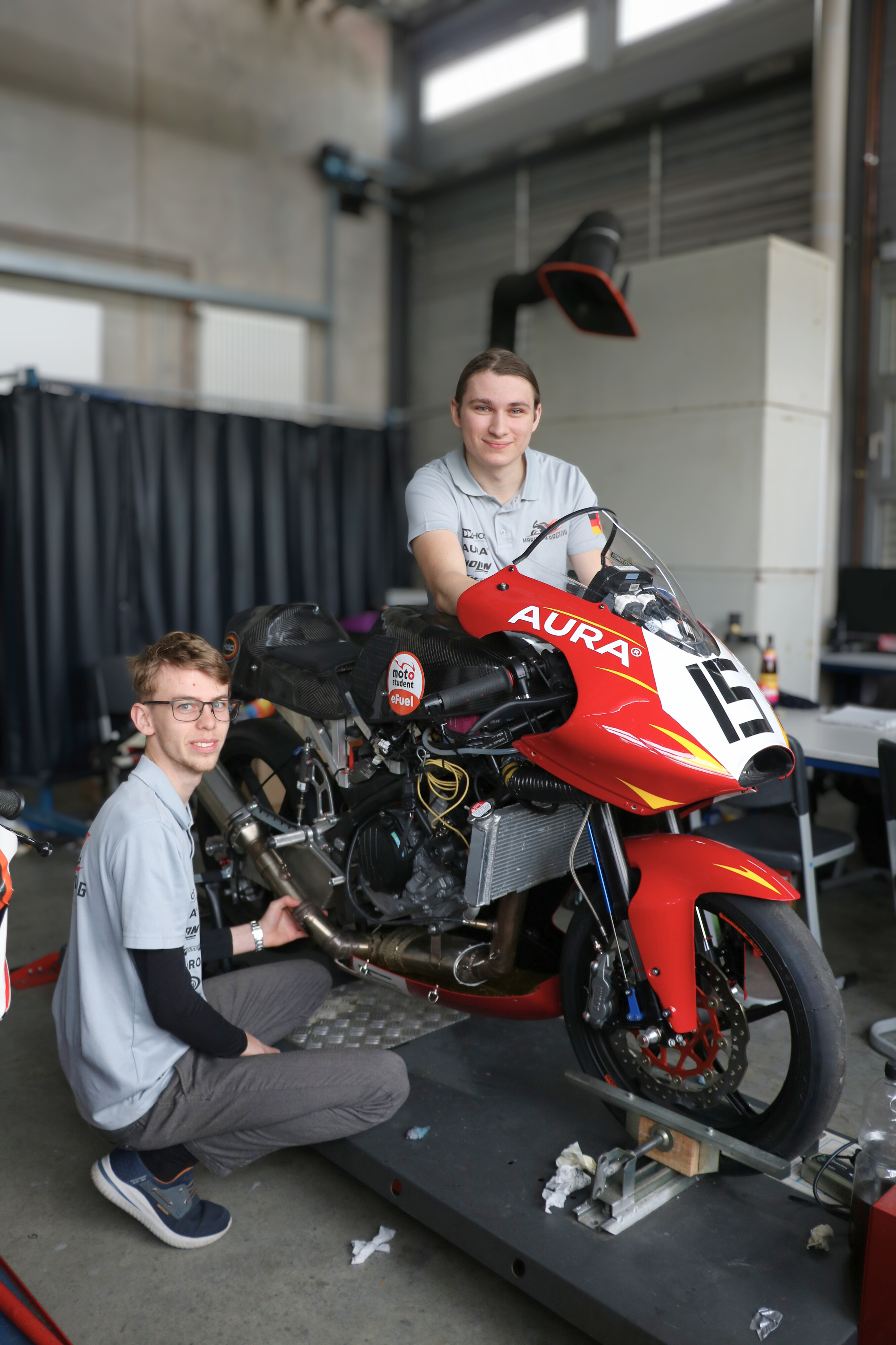 Heute ist Vincent, der Softwareentwicklung studiert, Teamchef des MariTeams. Er verantwortet unter anderem die Bereiche Software, Data und elektronische Systeme. Beide fahren auch privat Motorrad – und das bereits vor ihrer Teammitgliedschaft. Vincent ist mit einer roten Triumph Daytona 660 unterwegs, Elias mit einer weiß-goldenen Aprilia RS 660.