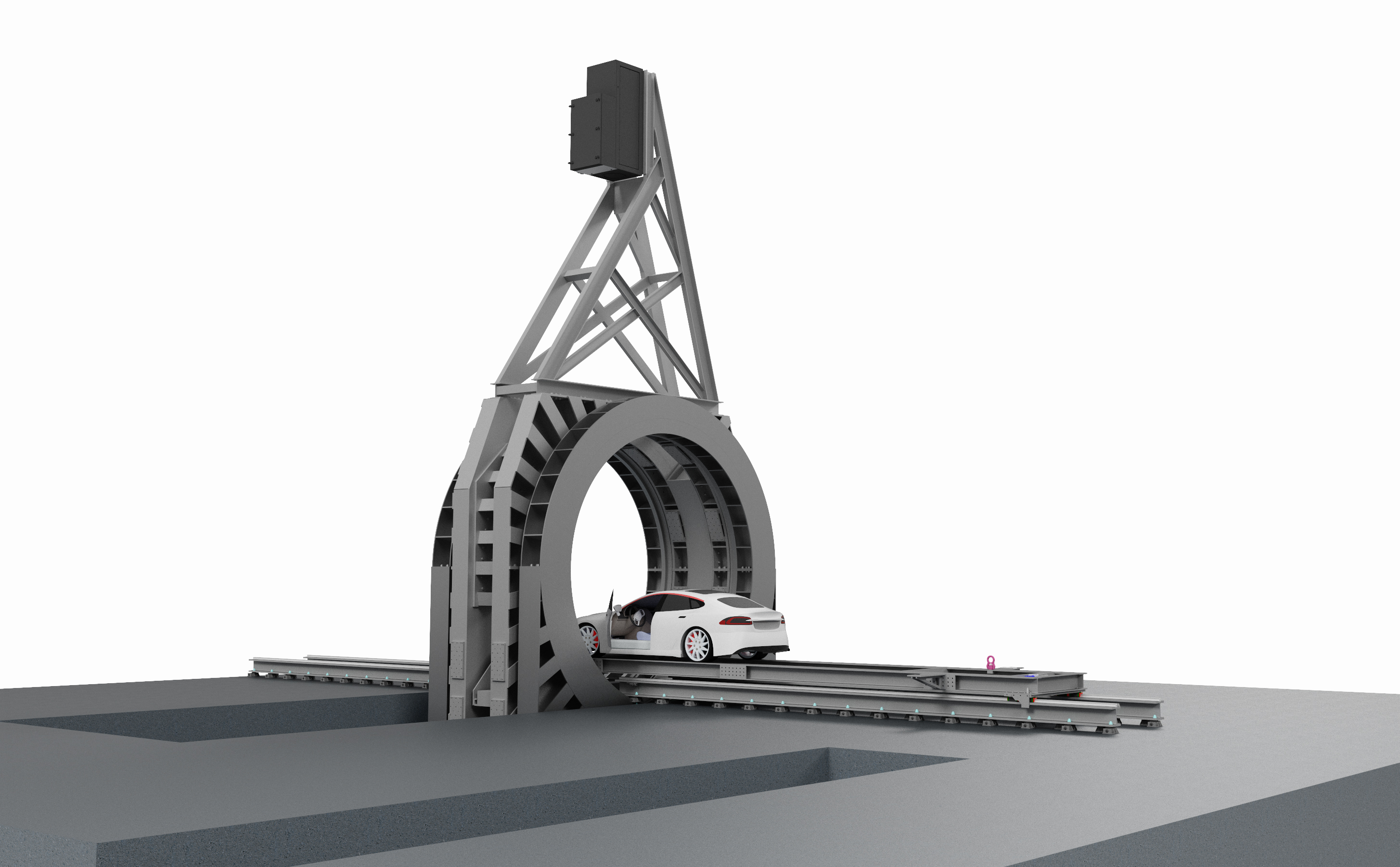 Traditional industrial tomographs reach their physical limits when it comes to large volumes and high radiography requirements. Fraunhofer IIS's XXL CT system, built in 2013, is considered the world's only publicly accessible facility capable of scanning entire vehicles and freight containers, but this system requires complex handling of the test objects.