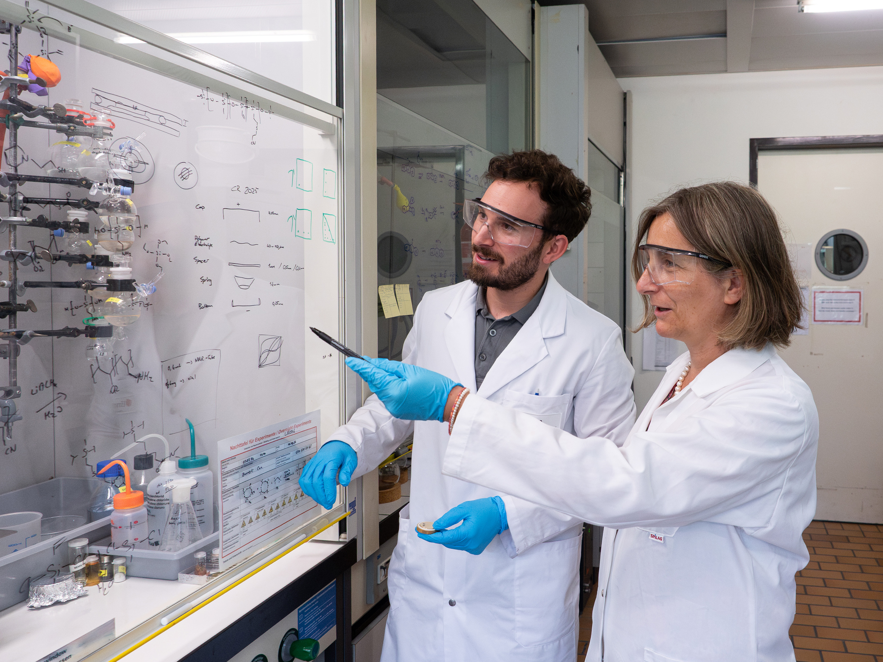 Hinter der Innovation steckt clevere Chemie. Das Ausgangspolymer für den Elektrolyten ist ein Polysiloxan, im Volksmund besser als Silikon bekannt. Der elastische Kunststoff hat einen grossen Nachteil für die Batterieforschung: Er ist apolar. Will heissen: Die geladenen Teilchen, die Ionen, lösen sich gar nicht in ihm auf. Den Forschenden rund um Dorina Opris ist es gelungen, das «Rückgrat» des Polymers mit funktionalen Gruppen zu versehen, die es zu einem guten Ionenleiter machen, – und dabei seine vorteilhaften elastischen Eigenschaften beizubehalten.