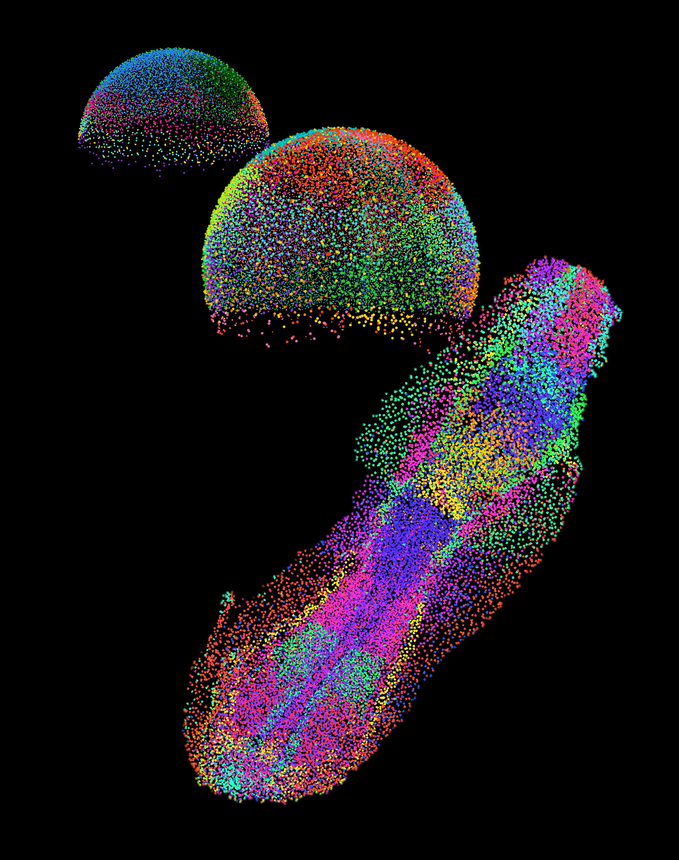 Die Aufnahmen liefern nicht nur statische Bilder, sondern ermöglichen auch Rückschlüsse auf räumliche und zeitliche Prozesse. So beobachteten die Forschenden bei der Schwanzbildung, dass Zellen entlang der Körperachse in einer Abfolge von Entwicklungsstadien angeordnet sind: An der Schwanzspitze befinden sich unreife Stammzellen, weiter vorne zunehmend reife Zellen wie etwa Muskelzellen. «In gewisser Weise kann man Zeit im Raum sehen», erklärt Wan.