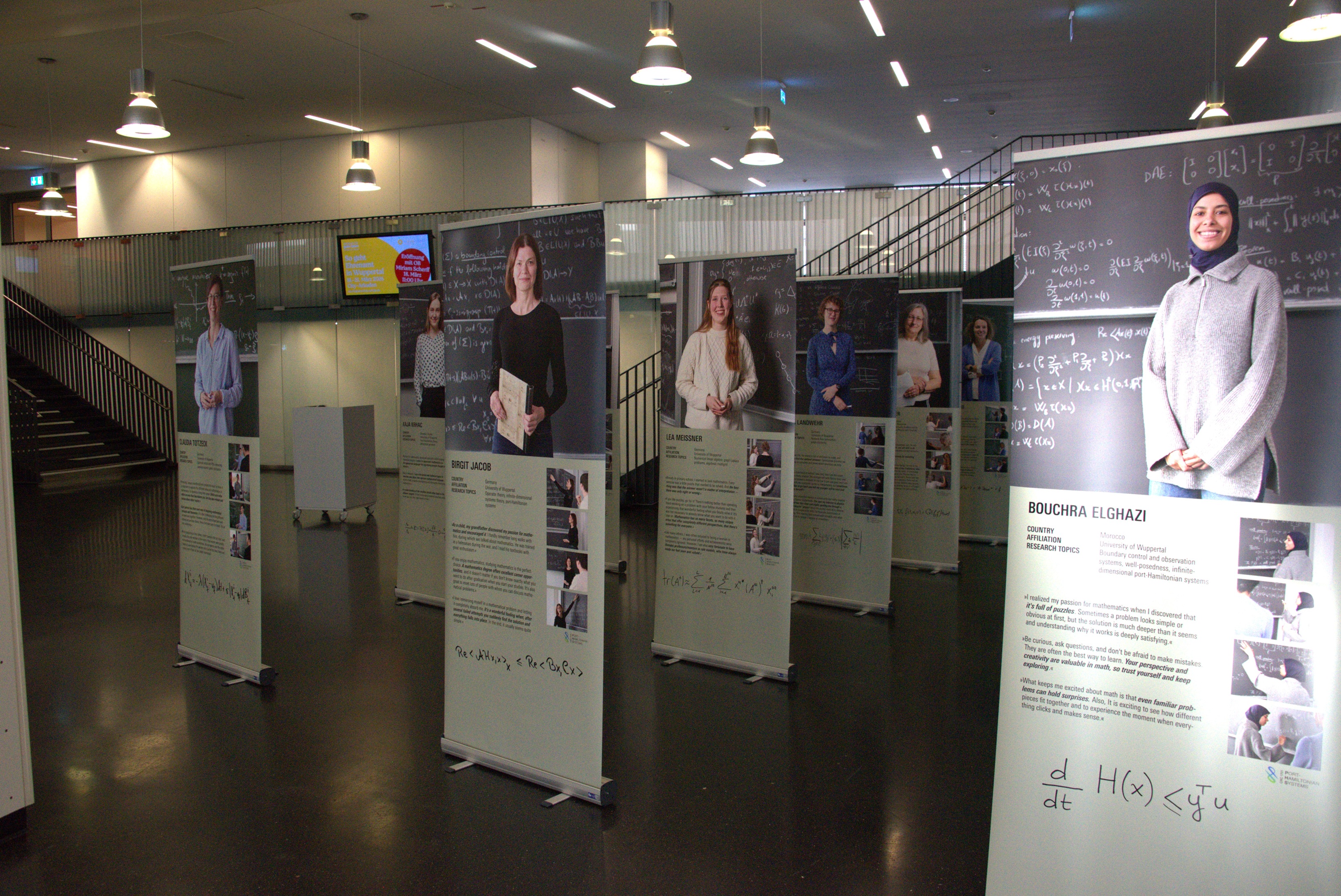 An der Bergischen Universität Wuppertal wird das internationale Porträt-Projekt um eine Schwesterausstellung erweitert. Die Fotografien erstellte Sigurd Steinprinz, das Design übernahm Student Marlon Berndt. Vorgestellt werden dabei 13 Frauen aus Deutschland, Italien, Libanon, Marokko und Slowenien, die gemeinsam in dem an der Uni Wuppertal angesiedelten Sonderforschungsbereich „port-Hamiltonian Systems“ forschen.