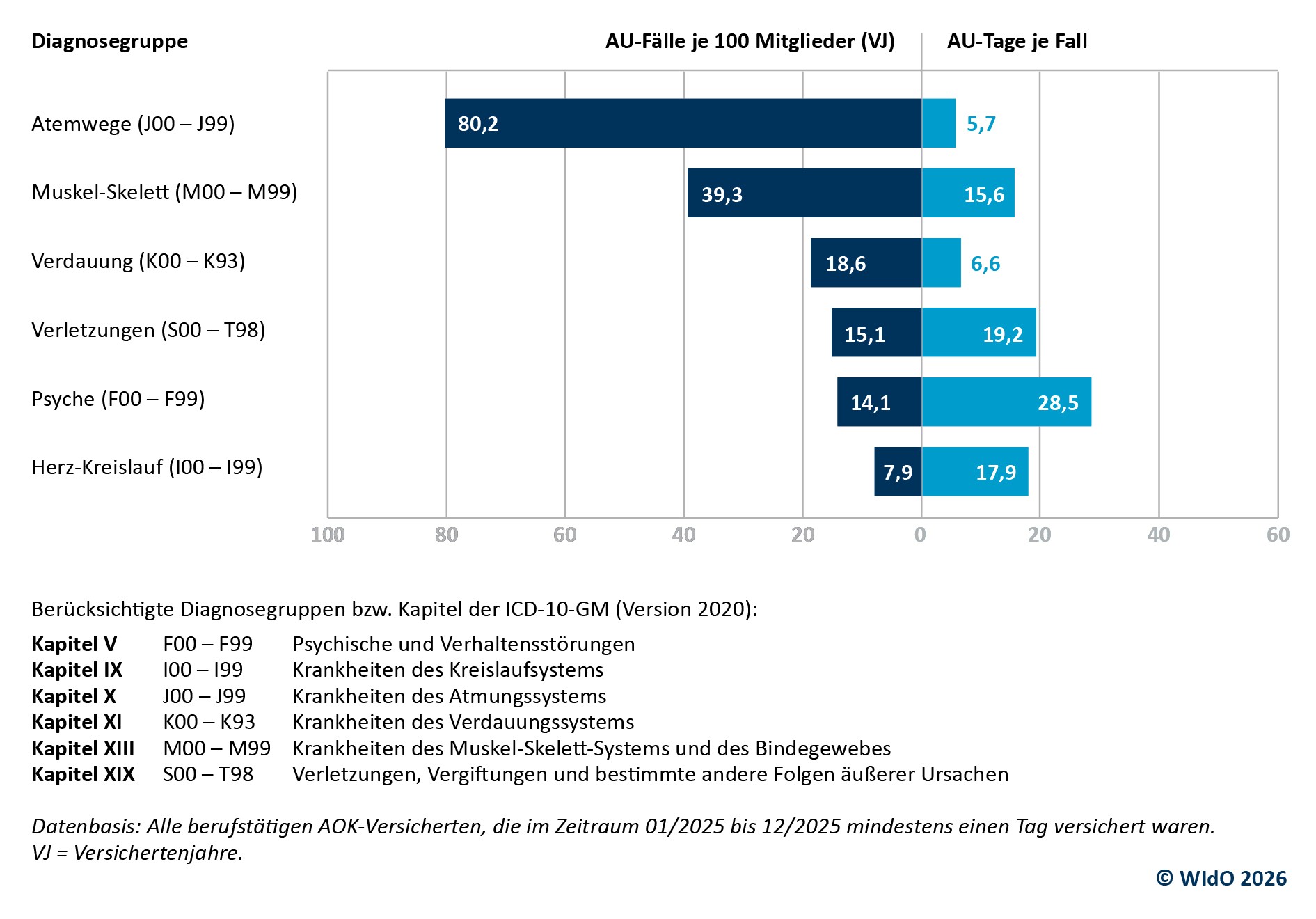 Für die Analysen des WIdO wurden die Daten von etwa 14,9 Millionen erwerbstätigen AOK-Versicherten ausgewertet.