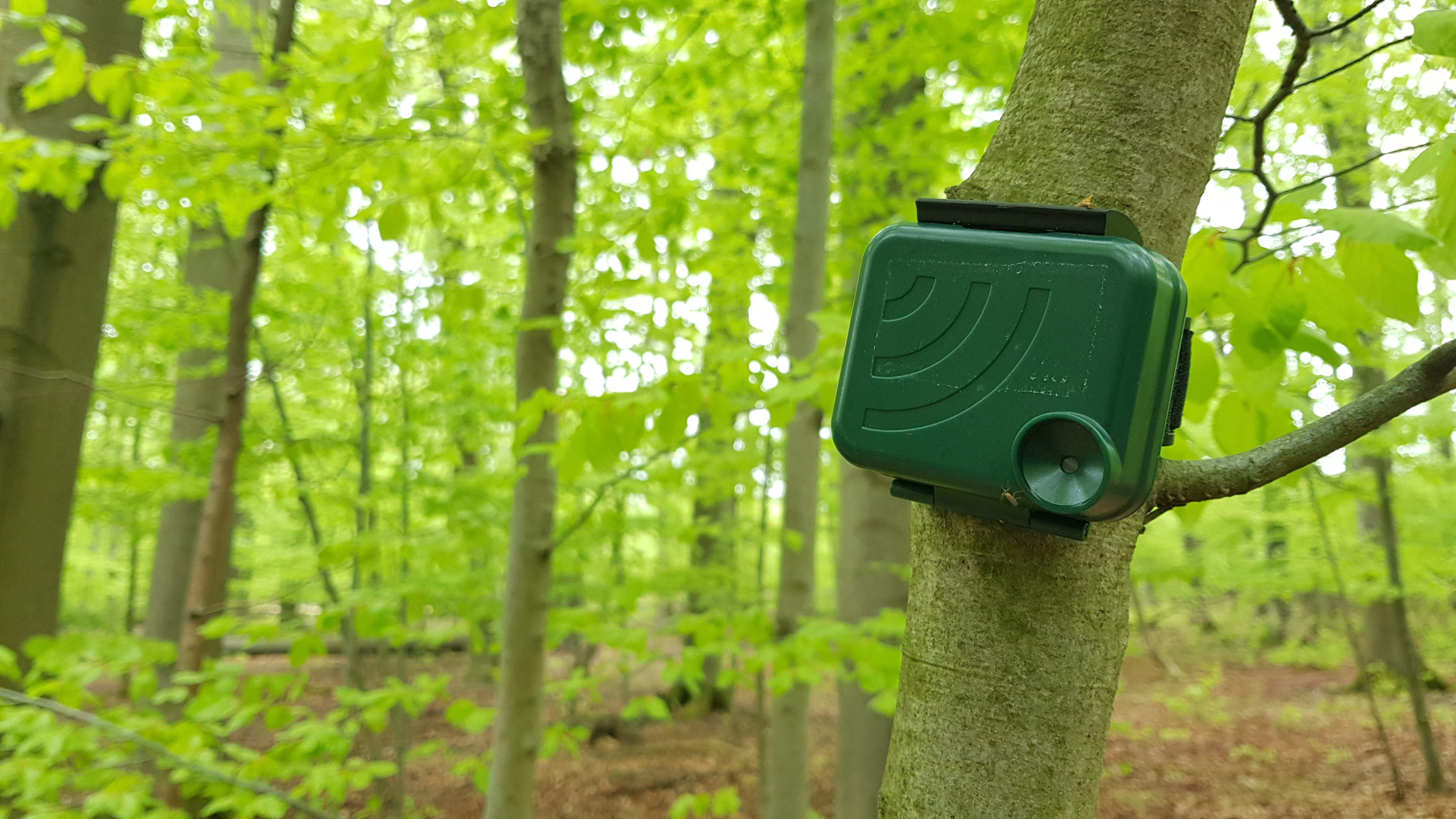 Im Rahmen ihrer Doktorarbeit haben Esther Felgentreff und das Forschungsteam diese Perspektive nun deutlich erweitert. In Wäldern rund um Jena setzten die Forschenden auf das sogenannte passive akustische Monitoring. Dafür brachten sie auf den Untersuchungsflächen kleine Aufnahmegeräte des Typs „AudioMoth“ an, die über das Jahr verteilt regelmäßig kurze Tonsequenzen aufzeichneten – rund um die Uhr, viermal jährlich und jeweils über einen Zeitraum von 30 Tagen.
