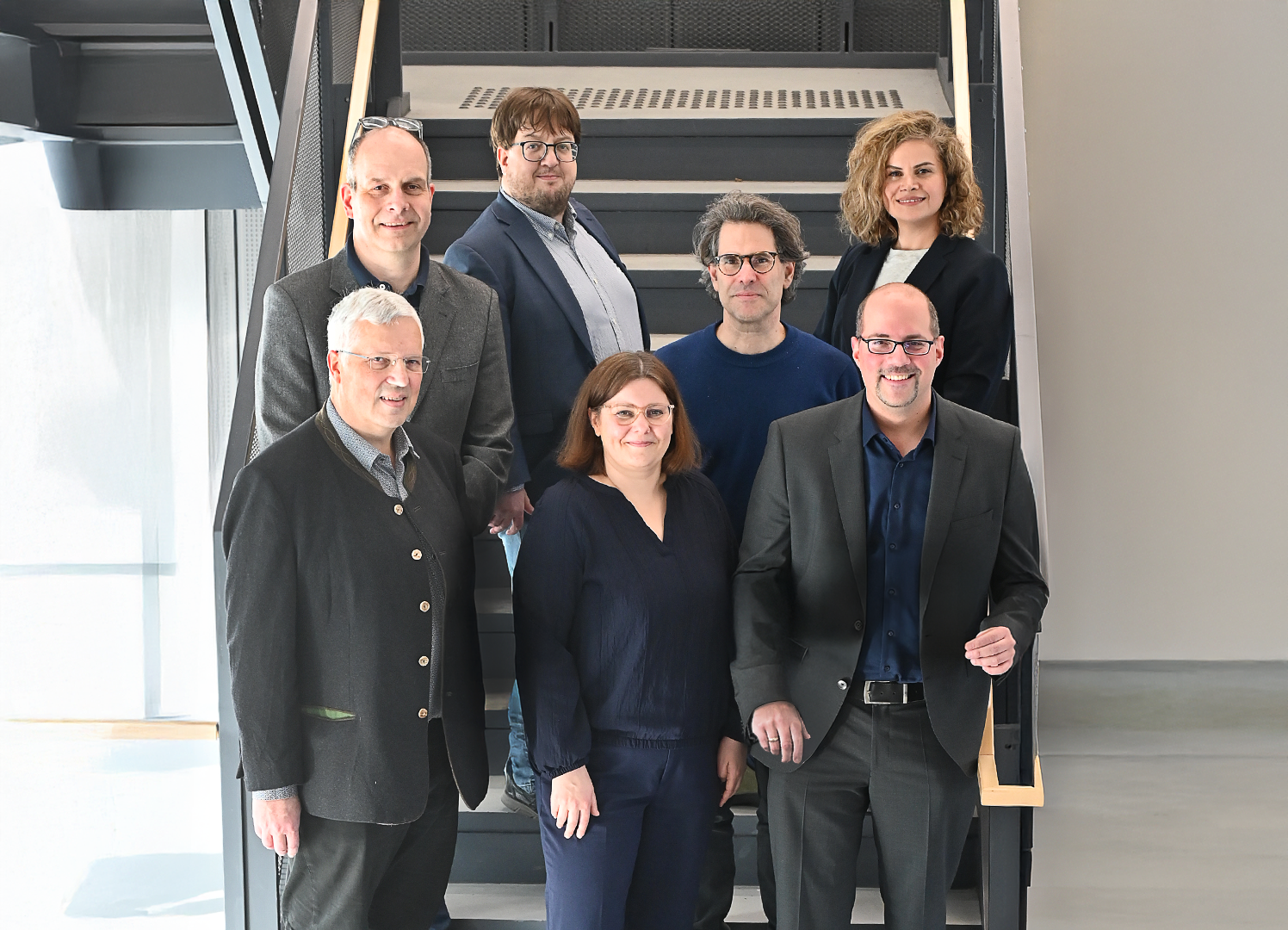 Die „Principle Investigators“ (kurz PIs) der Jürgen Manchot-Graduiertenschule TUTOR zusammen mit der Koordinatorin (v.l.): vordere Reihe: Prof. Dr. Thomas J.J. Müller (Sprecher), Dr. Martina Holz, Jun.-Prof. Dr. Markus Suta; hintere Reihe: Prof. Dr. Constantin Czekelius, Jun.-Prof. Dr. Jan Meisner, Prof. Dr. Peter Gilch, Prof. Dr. Shirin Faraji,. (Foto: HHU / Klaus Schaper)