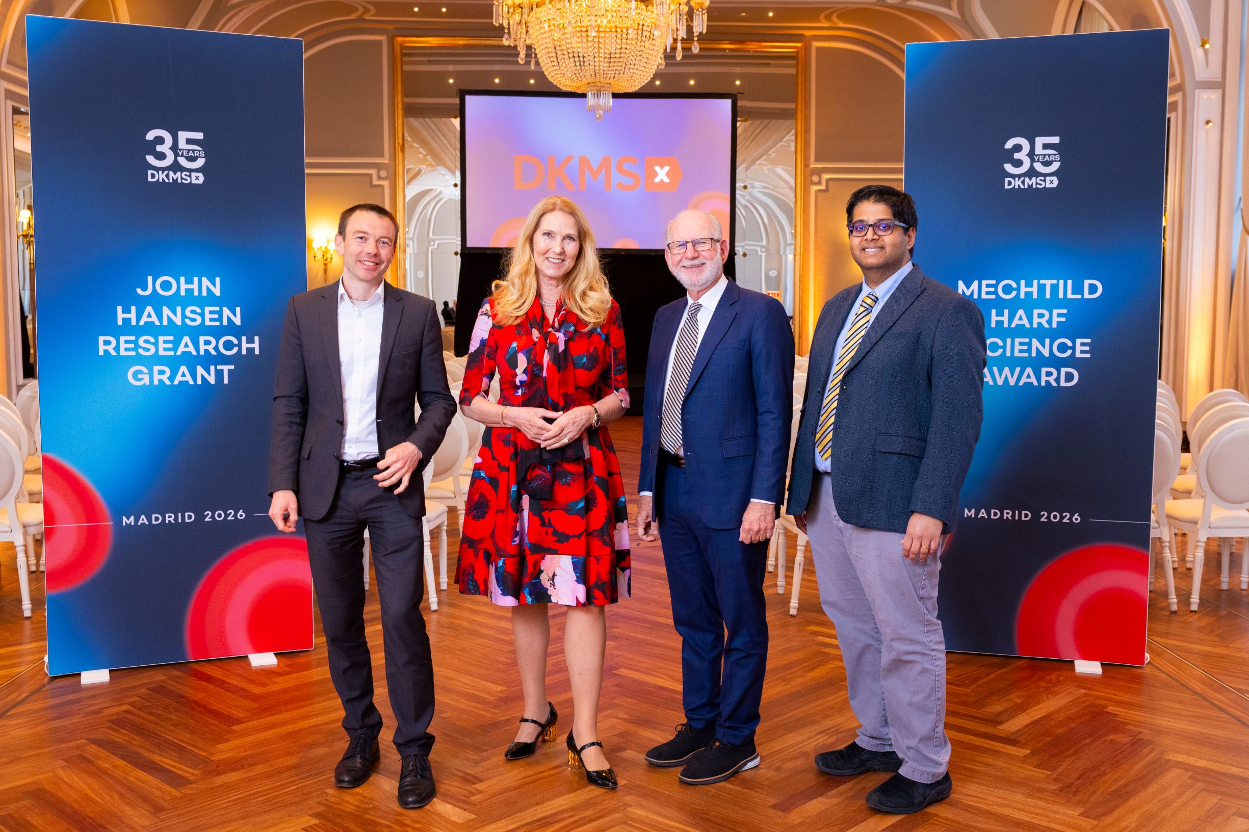 Bei der Preisverleihung unter dem Motto „35 Jahre Wissenschaft bei der DKMS“ wurden auch vier Nachwuchsforschende mit dem mit 240.000 Euro dotierten DKMS John Hansen Research Grant 2026 ausgezeichnet: