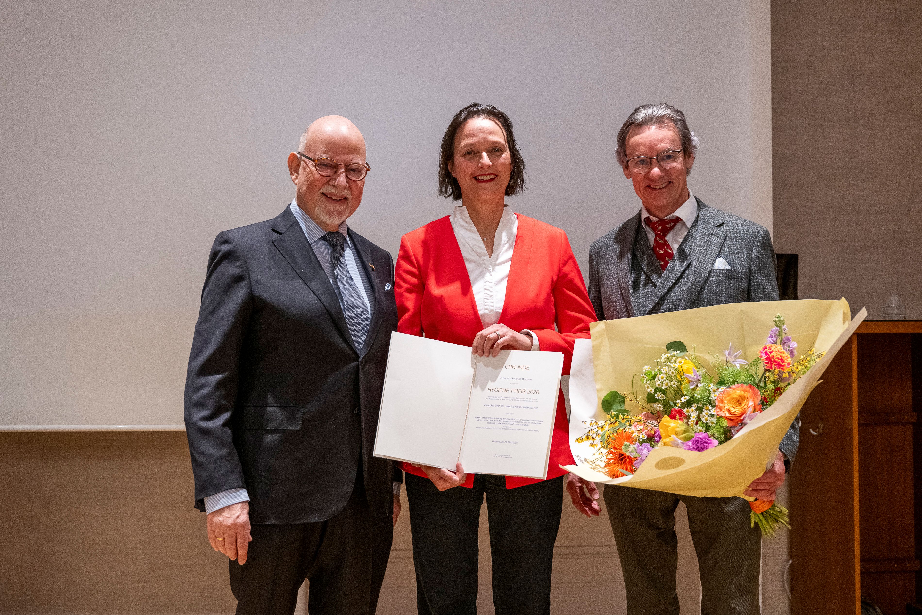 Prof. Dr. Iris Freya Chaberny ist mit dem renommierten Hygiene-Preis 2026 der Rudolf-Schülke-Stiftung ausgezeichnet worden. Sie ist Direktorin des campusübergreifenden Instituts für Krankenhaus- und Umwelthygiene des Universitätsklinikums Schleswig-Holstein (UKSH) und Professorin an der Medizinischen Fakultät der Christian-Albrechts-Universität zu Kiel. Der Preis würdigt wissenschaftliche Arbeiten, die die Infektionsprävention und den Schutz der öffentlichen Gesundheit entscheidend voranbringen.