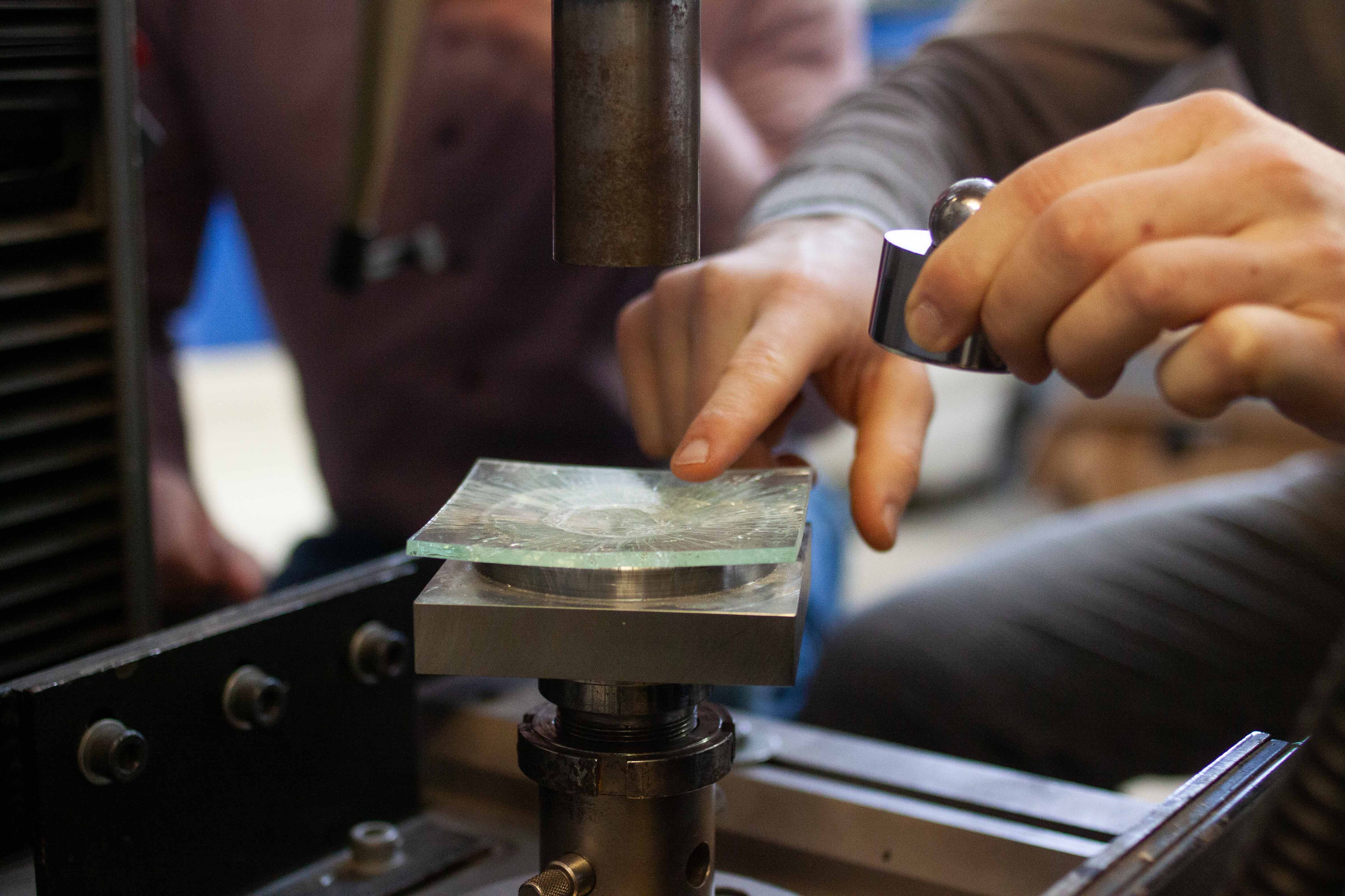 Dass altes Fensterglas in Deutschland nicht schon längst für die Konstruktion neue Fenster genutzt wird, liegt vor allem an den mangelnden Qualitätsstandards, meint Teich: „Die Hersteller brauchen Sicherheit, dass die verwendeten Materialien ihre Anforderungen erfüllen. Bisher gab es jedoch keinen Ansatz, die technischen Eigenschaften gebrauchter Flachgläser zu prüfen.“ Diese Lücke hat der Bauingenieur jetzt gemeinsam mit seinem Team geschlossen. Sein wissenschaftlicher Mitarbeiter Sebastian Wernli, Industriedesigner und Spezialist für Kreislaufwirtschaft, hat im Labor die optischen und mechanischen Eigenschaften hunderter Glasproben untersucht. Jede einzelne wurde vor einem schwarzen Hintergrund positioniert und von hinten angestrahlt, sodass Kratzer sichtbar wurden. Beim anschließenden Biegeversuch belastete Wernli die Proben – darunter sowohl neue als auch gebrauchte Flachgläser, bis sie zerbrachen. Die Kraft, die dabei aufgewendet wurde, ist ein Maß für die Festigkeit.