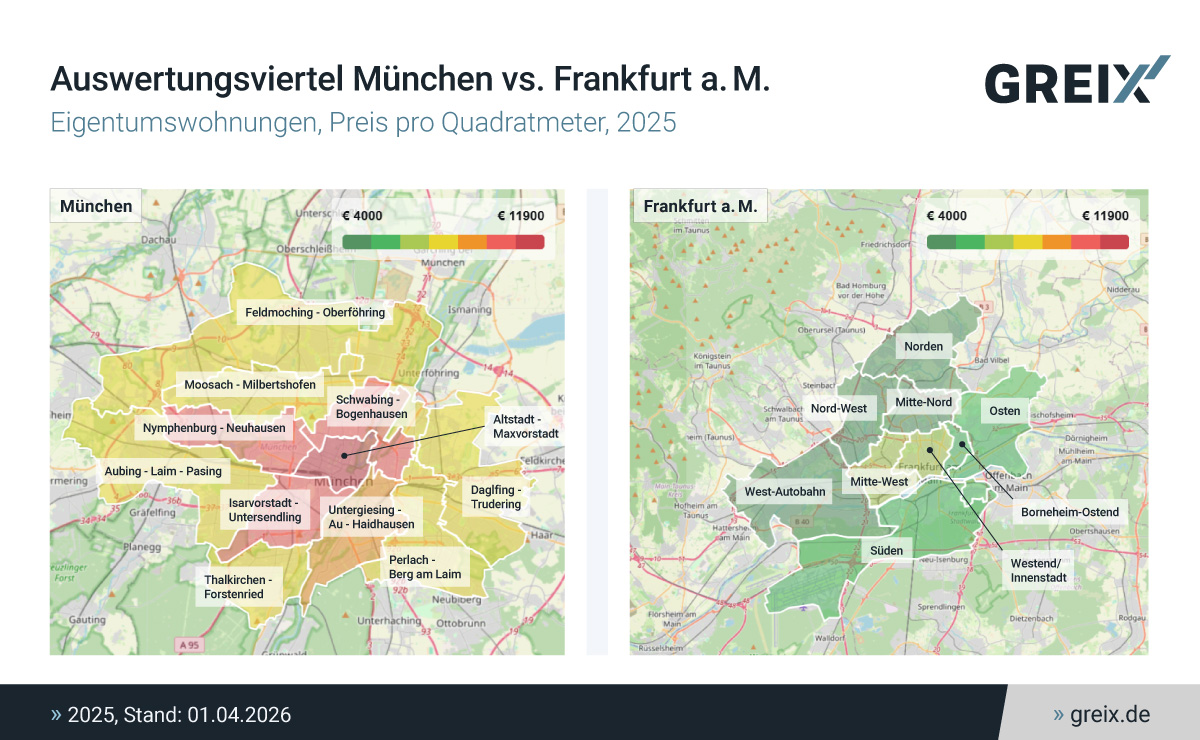 GREIX-Kaufpreisindex Stadtviertel 2025: Schere zwischen Stadtzentren und Randlagen öffnet sich wieder