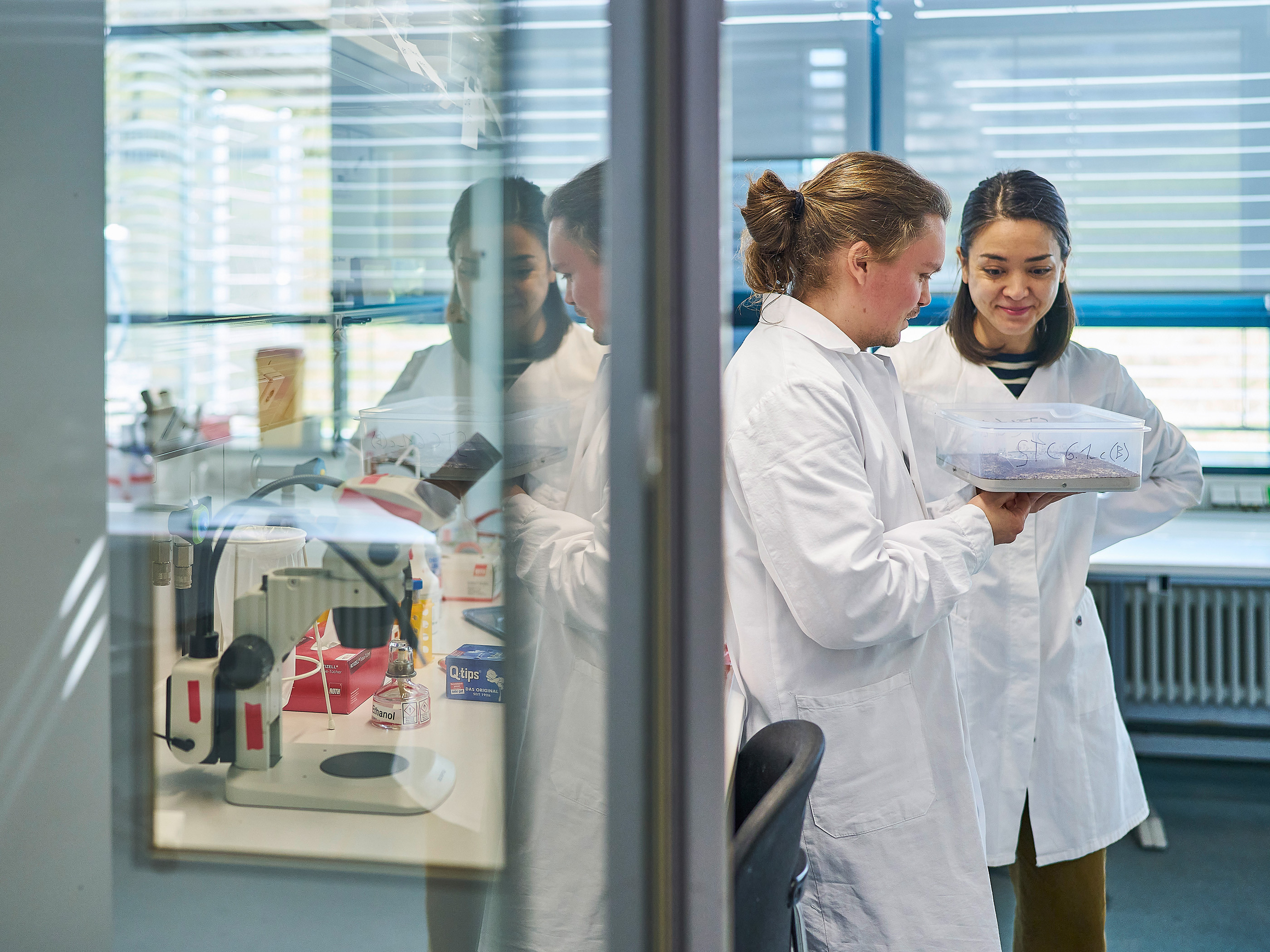 Um den Einfluss körperlicher Berührungen auszuschließen, entwarfen die Wissenschaftlerinnen und Wissenschaftler ein experimentelles Setup, in dem die Ameisen die Larven zwar riechen, aber nicht berühren konnten. In Verhaltensexperimenten setzten sie die Ameisen außerdem synthetisiertem MEHMP aus und glichen die Ergebnisse dieser Experimente mit mehreren Kontrollexperimenten ab, um andere Ursachen für das beobachtete Verhalten auszuschließen. Diese Experimente zeigten eindeutig, dass das Duftsignal der Larven ausreichte, um das Legen weiterer Eier bei erwachsenen Ameisen zu unterdrücken – selbst wenn es sich um synthetisches MEHMP handelte und keine Larven in der Nähe waren.