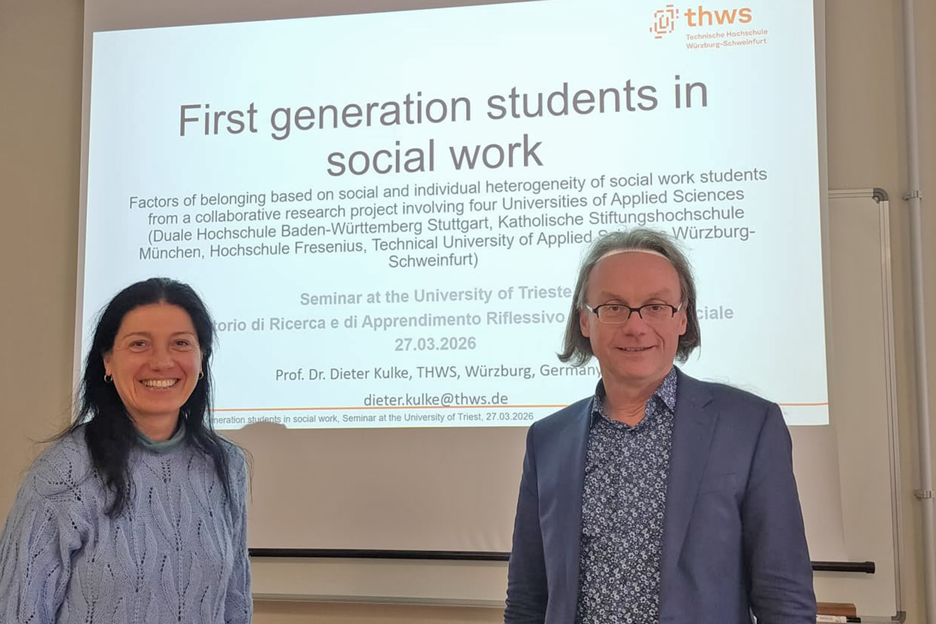 Eine Gastprofessur führte Prof. Dr. Dieter Kulke von der Fakultät Angewandte Sozialwissenschaften der Technischen Hochschule Würzburg-Schweinfurt (THWS) an die Universität Triest, in der Hauptstadt der italienischen Region Friaul-Venezien. Auf Einladung der Humanistischen Fakultät, des Dipartimento di Studi Humanistici der Università degli Studi di Trieste, präsentierte Prof. Dr. Kulke Forschungsergebnisse in mehreren Formaten, lernte die Universität und den Bereich Soziale Arbeit in Italien besser kennen und besprach weitere Möglichkeiten der Zusammenarbeit. Wichtig besonders für Studierenden: Die THWS hat mit der Universität Triest eine ERASMUS+-Vereinbarung mit Mobilitätsmöglichkeiten geschlossen. Nicht nur deswegen ist die Universität Triest sehr interessant für ein Studium der Sozialen Arbeit, denn sie bietet auch ein breites Studienprogramm in einer sehr persönlichen Atmosphäre mit lebendigem Austausch zwischen Studierenden und Lehrenden. „Außerdem“, findet Prof. Dr. Kulke, „ist es sehr interessant, Vergleiche zu Deutschland zu ziehen.“ Ähnlichkeiten bestünden zum Beispiel hinsichtlich der föderalen Organisation der Rahmenbedingungen Sozialer Arbeit und der verwendeten Methoden, während sich Unterschiede hinsichtlich der Regulierung der Sozialen Arbeit finden ließen.