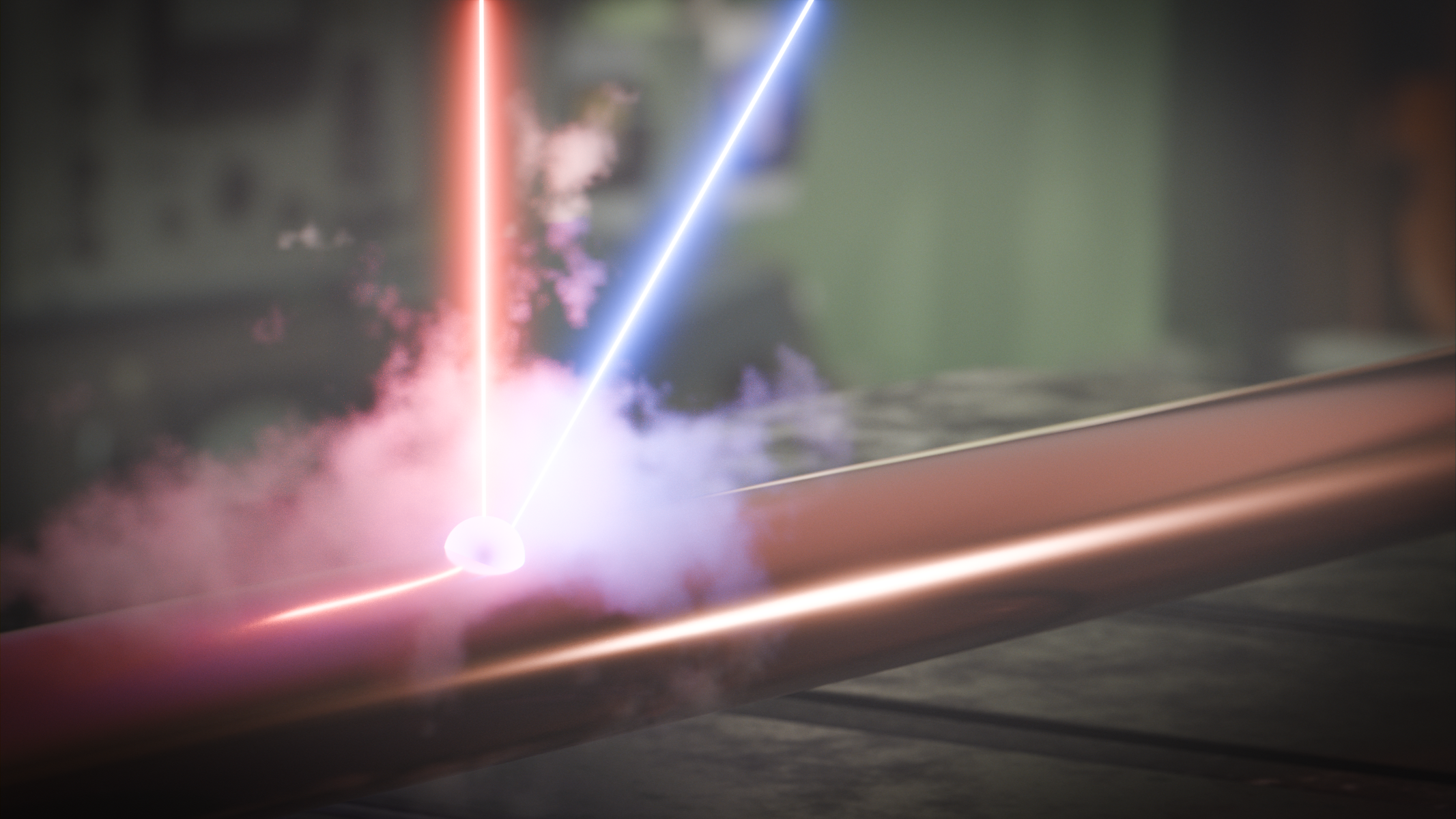 Zunächst trifft ein extrem intensiver optischer Lichtblitz auf einen filigranen Kupferdraht, der nur etwa ein Siebtel so dick ist wie ein menschliches Haar. Die Intensität des Pulses beträgt dabei rund 250 Billionen Megawatt pro Quadratzentimeter – konzentriert auf eine winzige Fläche und für extrem kurze Zeit. Solche Werte werden sonst nur unter außergewöhnlichen Bedingungen erreicht, etwa in extremen astrophysikalischen Umgebungen wie der unmittelbaren Nähe von Neutronensternen oder bei Gammastrahlenausbrüchen.