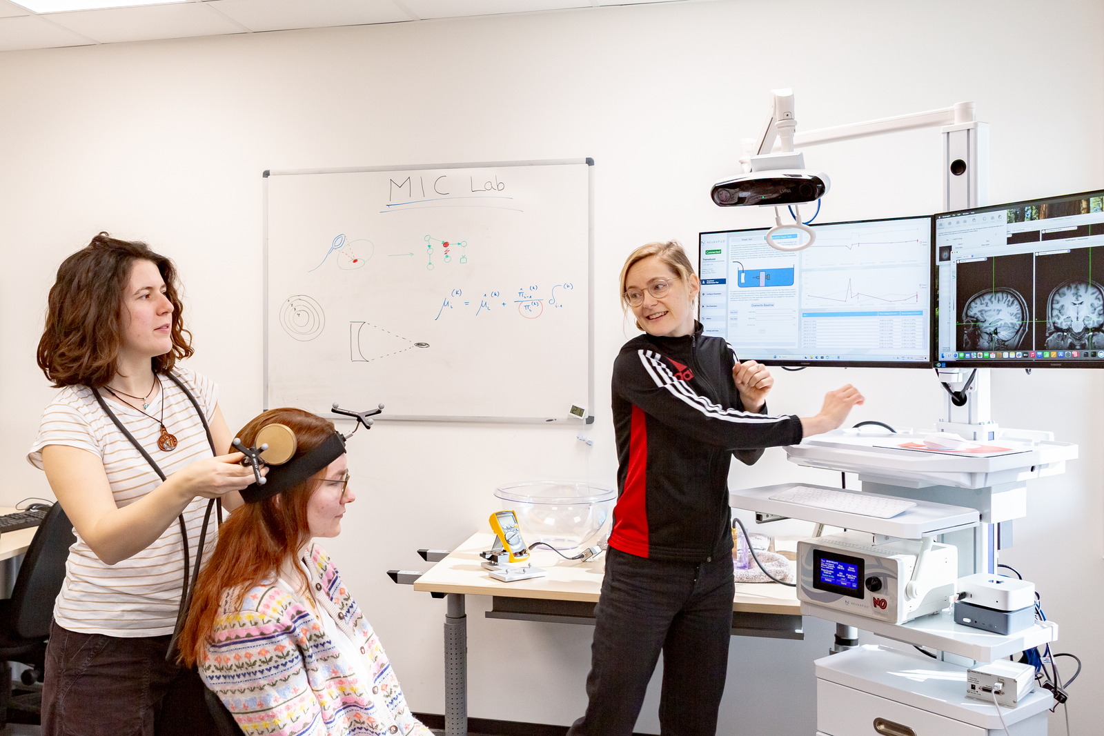 Das moderne TUS System, das im an der Uni Osnabrück neu eingerichteten „Models and Interventions for Cognition-Lab“ genutzt wird, kann tieferliegende, bislang schwer zugängliche Hirnareale mit millimetergenauer Fokussierung stimulieren und ermöglicht es somit, den Beitrag dieser Regionen zu affektiven kognitiven Prozessen, wie z.B. dem Grübeln und Gedankenkreisen, zu testen.